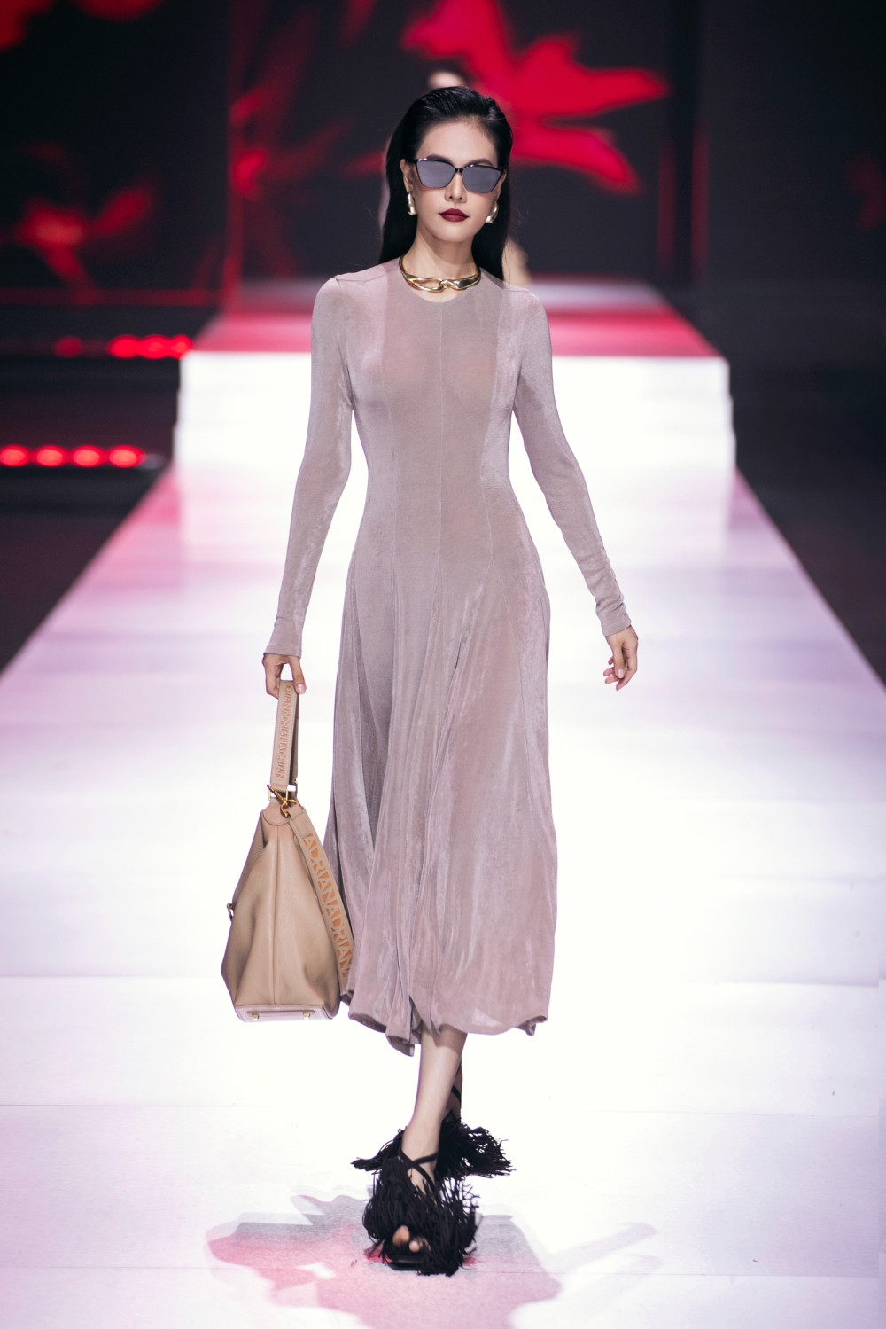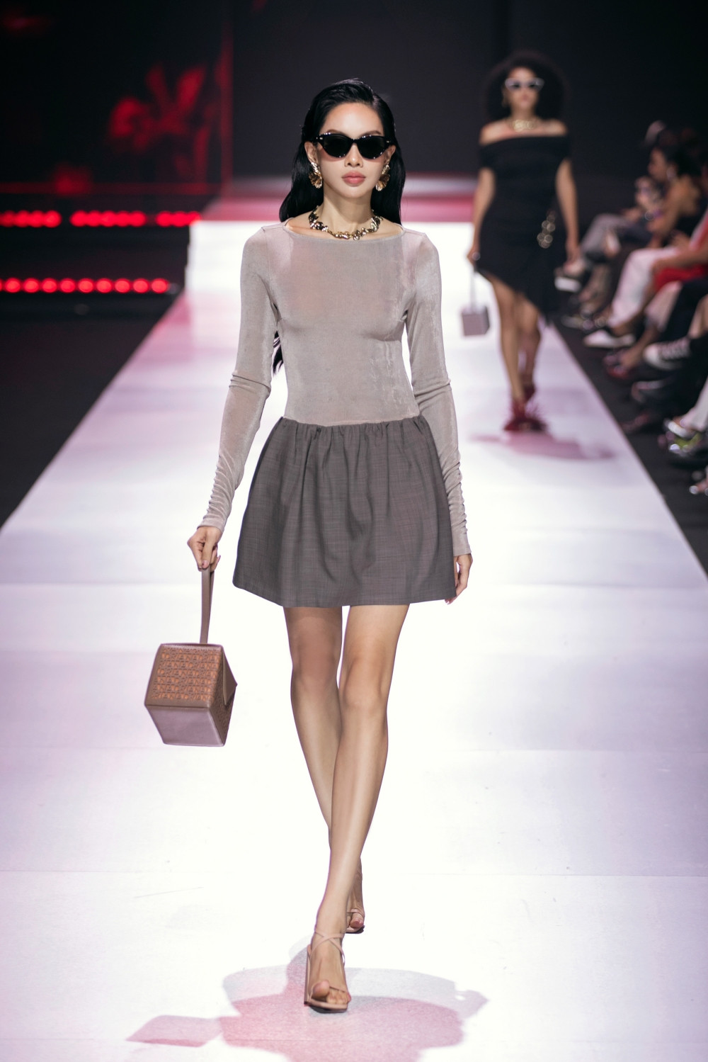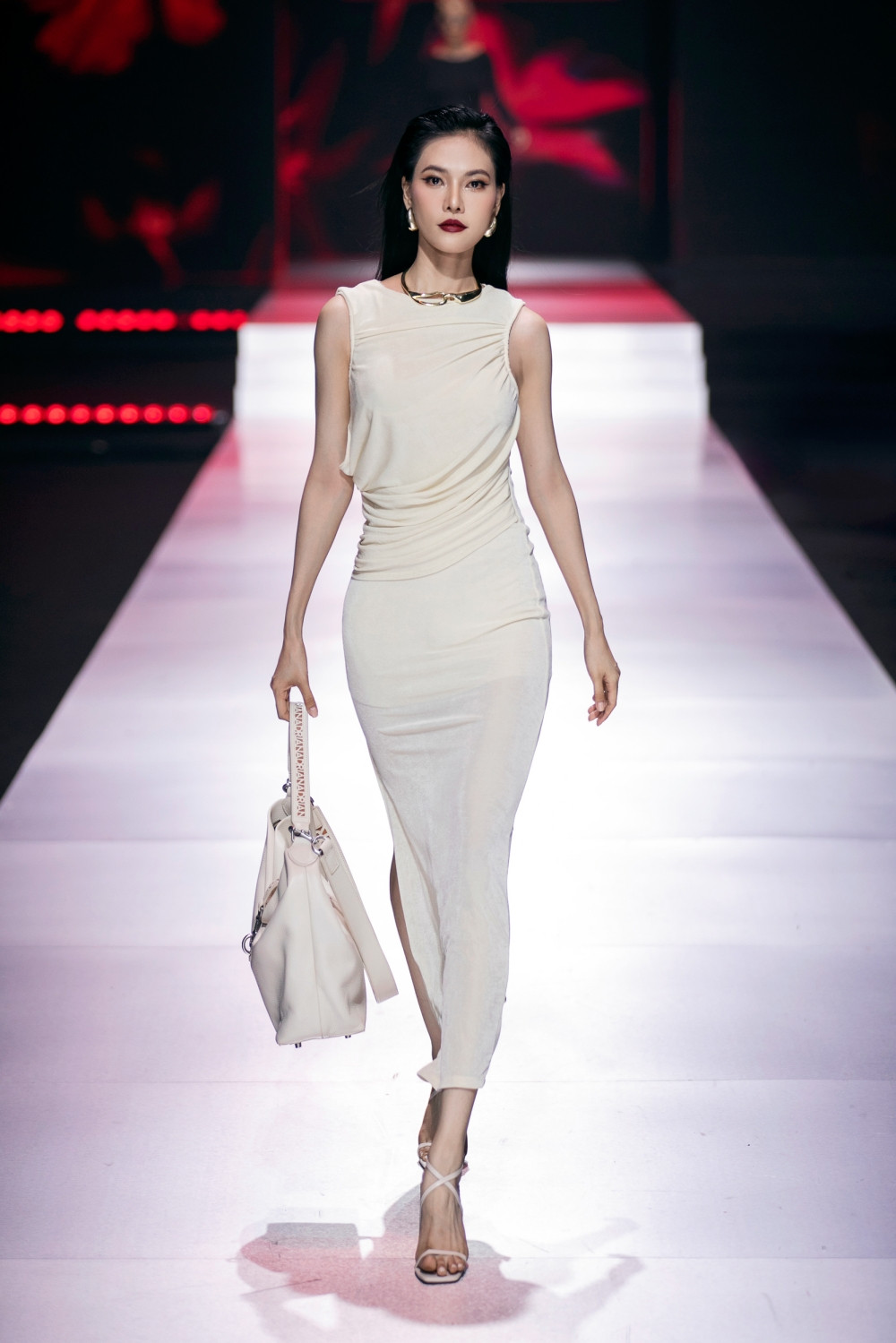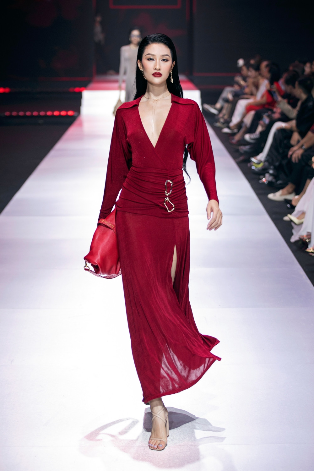 BST Ngân Nga được NTK Adrian Anh Tuấn mang đến Tuần lễ Thời trang Quốc tế Việt Nam 2024 với chủ đề #FashionEvolution chính là cú bứt phá thể hiện sự quyến rũ và có chút gì đó “nồng cháy” của con tim trong tình yêu, hòa cùng tinh thần của những buổi tiệc tùng khi về đêm.
