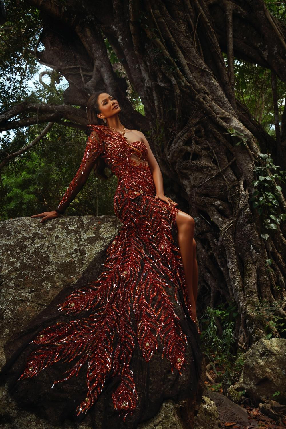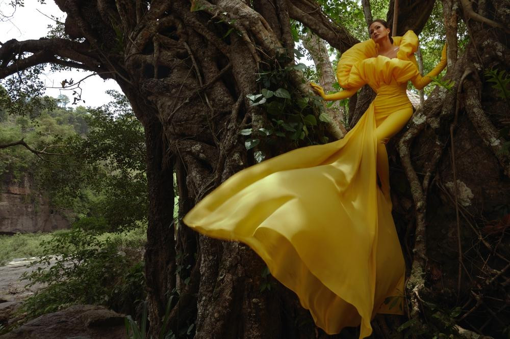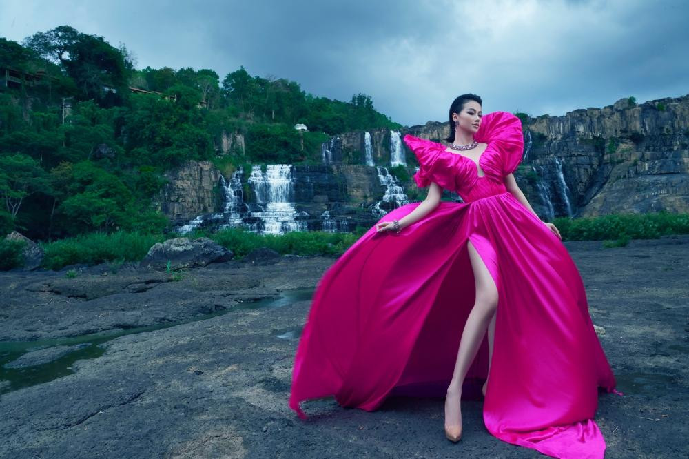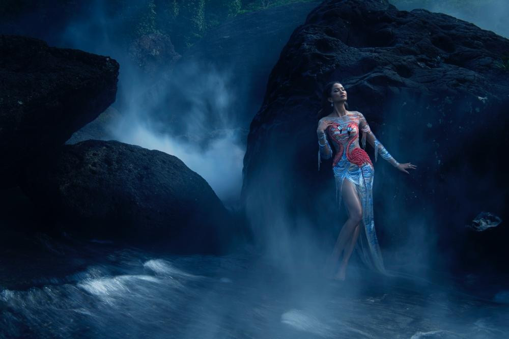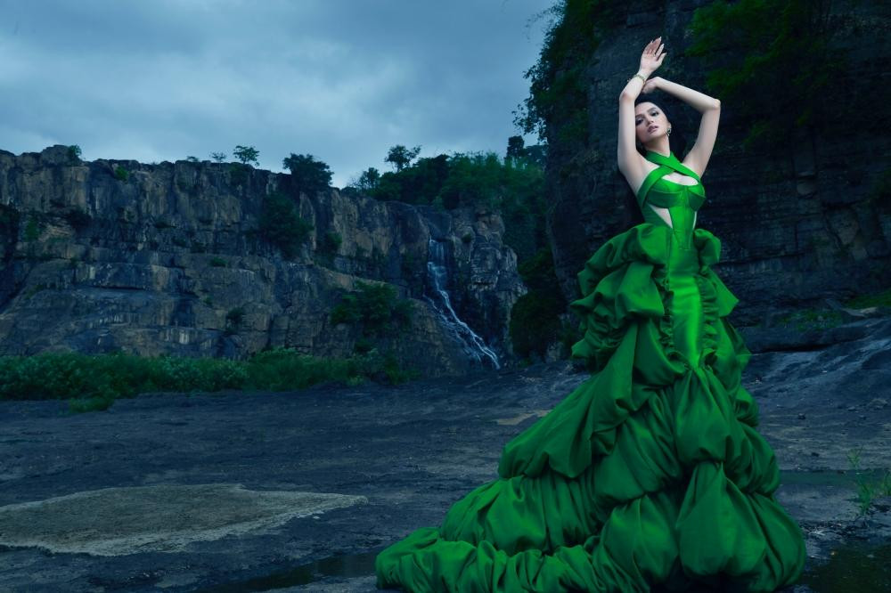 Bằng nghệ thuật cắt cắt may dựng phom khéo léo, NTK Linh San đã biến những thớ vải cao cấp thành biểu tượng của sự sống hoang dã, từng chiếc váy được tạo nên bởi những hàng chục ngàn hạt cườm, đá quý và sapphire lấp lánh, được đính hoàn toàn bằng phương pháp thủ công bởi hơn 20 người thợ lành nghề nhất.