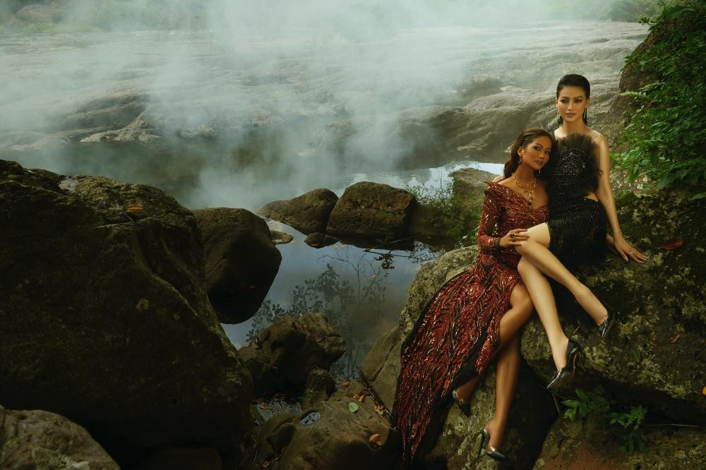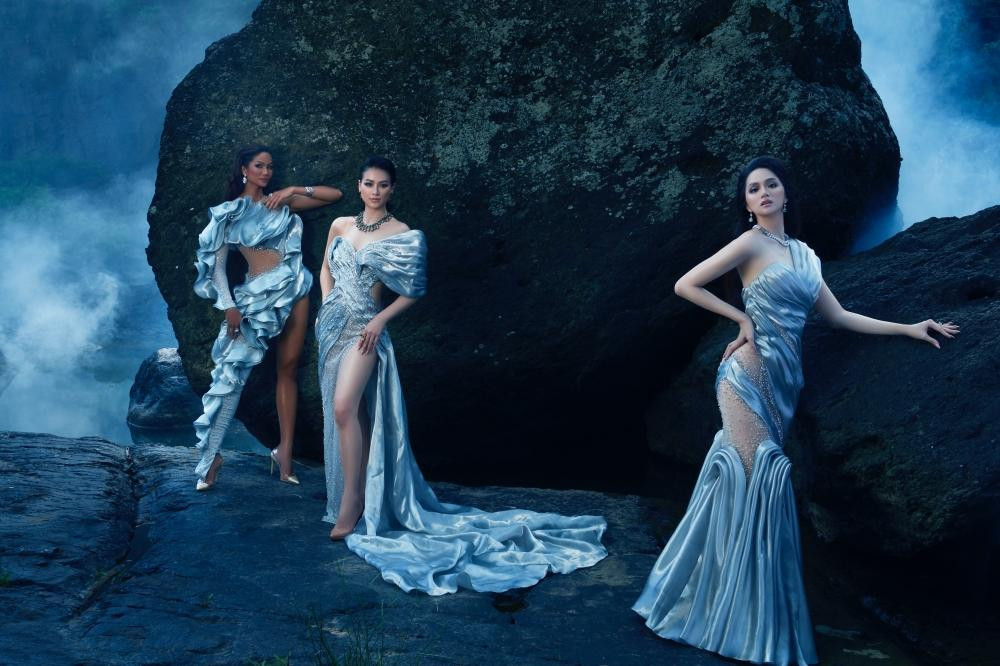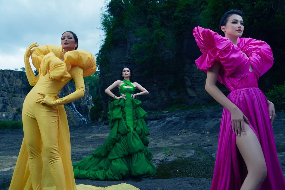 Không thể không nhắc đến những mẫu trang phục được khơi nguồn sáng tạo từ hoa. Sắc màu tươi sáng và rực rỡ cùng phom dáng với những đường cong uốn lượn, xoay vòng ôm lấy thân hình của ba nàng hậu H’Hen Niê, Hương Giang và Phương Khánh, ba bông hoa tuyệt đẹp của bầu trời showbiz Việt.