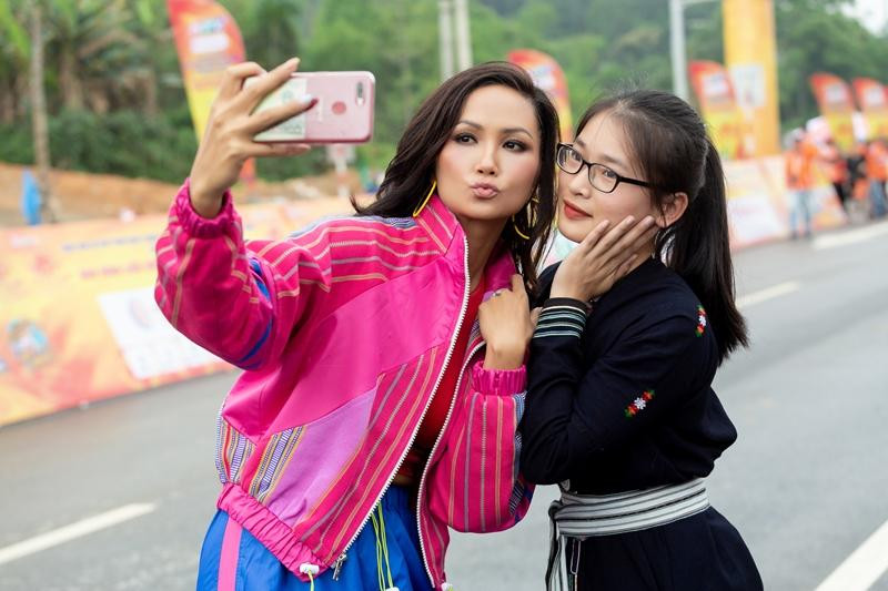 Cô thân thiện chụp ảnh cùng mọi người và hào hứng nhún nhảy để cổ vũ tinh thần các tay đua. H’Hen Niê chia sẻ Cao Bằng cũng là địa danh giúp cô hoàn thành mục tiêu đến với 63 tỉnh thành của Việt Nam: “Giờ thì tỉnh thành nào Hen cũng ghé qua rồi, chỉ còn một vài đảo ở xa Hen chưa đến thôi, hy vọng Hen sẽ sớm đặt chân được hết tất cả mọi nơi của Việt Nam.”