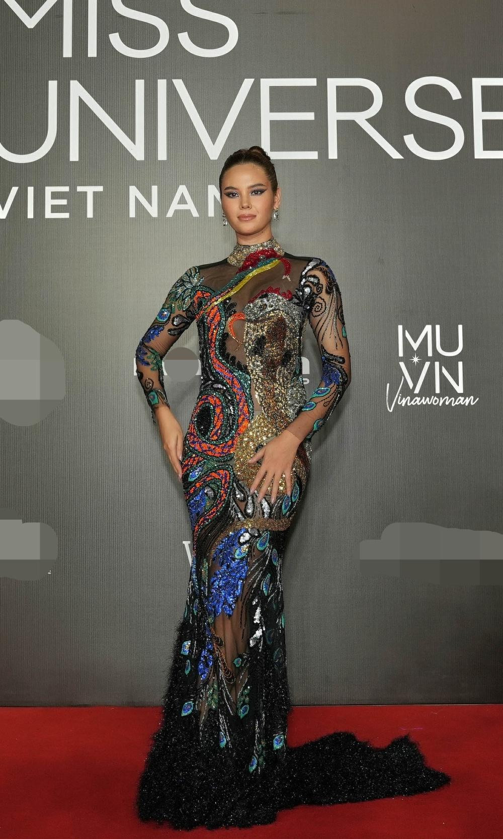 "Mèo xám" Catriona Gray, Miss Univese 2018 ấn tượng không kém trong thiết kế đính đá cầu kỳ.