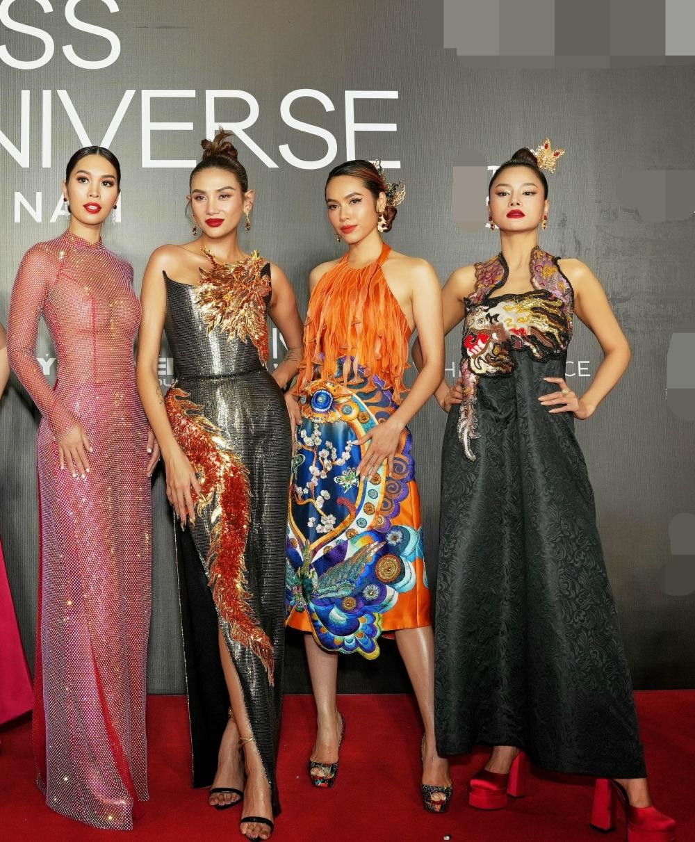 Siêu mẫu Hà Anh, siêu mẫu Võ Hoàng Yến, Á hậu Hoàng My, siêu mẫu Vũ Thu Phương trên thảm đỏ.