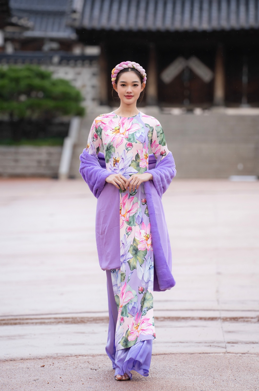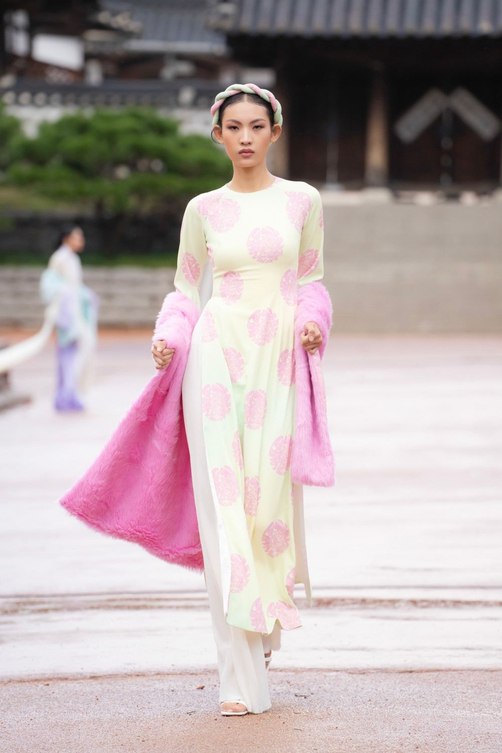 Một trong những BST đặc sắc được các NTK Việt mang đến Tuần lễ Thời trang lần này có tên Duyên. Đây là BST bao gồm các mẫu thiết kế áo dài giao thoa với áo hanbok cho cả nam và nữ của NTK Adrian Anh Tuấn, được lấy cảm hứng từ mùa Đông, mùa lễ hội với kiểu dáng đa dạng mang xu hướng thời trang bền vững. BST mang sắc tím - tone màu chủ đạo của tình yêu, mang lại cho người mặc, người xem những cảm xúc thăng hoa.