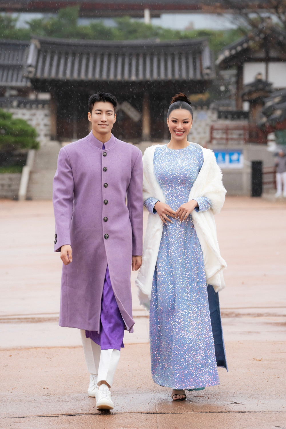 Á hậu Miss Supranational 2022 Nguyễn Huỳnh Kim Duyên sánh đôi cùng Á vương Mister Supranational 2023 Lee Yong Woo.