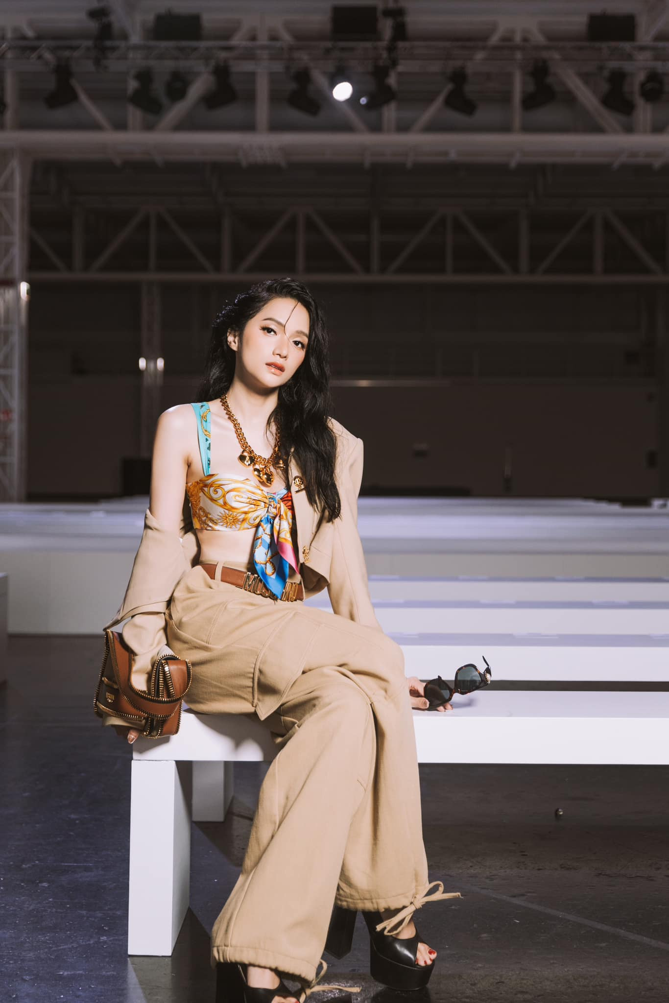 | Hương Giang đọ sắc cùng dàn mỹ nhân quốc tế tại hàng ghế đầu. |