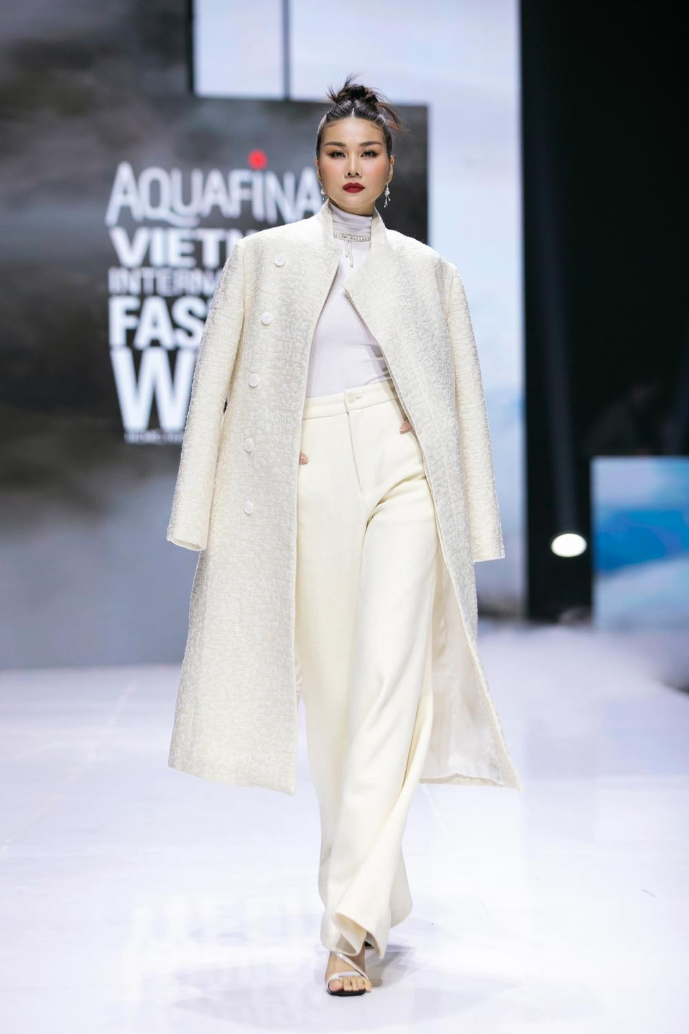 Trong BST này, siêu mẫu Thanh Hằng đảm nhận cả vai trò first face lẫn vedette. “Chị đại” làng mốt “biến hóa” từ phong cách thanh lịch trong bộ trang phục lấy tone màu trắng làm chủ đạo khi mở màn...
