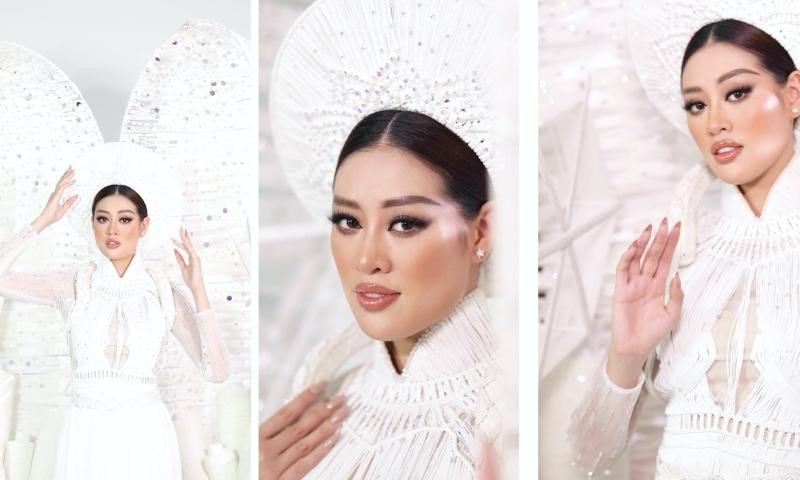 Nàng hậu cũng rất tỉ mẩn học cách lắp ráp sao cho chính xác nhất, trước ngày thi National Costume (Trang phục Dân tộc), Khánh Vân sẽ phải dành gần 1 tiếng để lắp ráp hoàn thiện set trang phục khá phức tạp này.