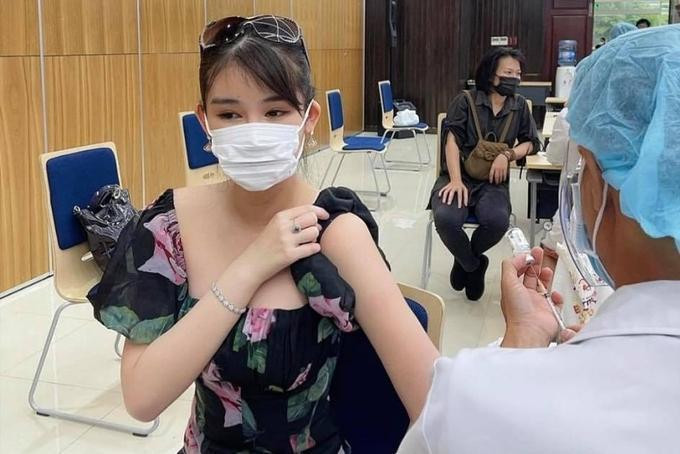Hoa hậu Lê Âu Ngân Anh cũng tiêm vắc-xin vào chiều 25/6. Cô chia sẻ mình đã uống thuốc sau khi tiêm theo đúng lời dặn của bác sĩ nên không có dấu hiệu sốt hay mỏi cơ.
