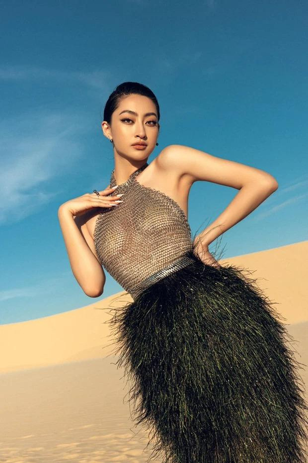Nàng Hậu đã rất nhiều lần diện đồ xuyên thấu để lộ một phần vòng 1 nhưng luôn giấu được nội y hoặc miếng dán ngực. Lương Thùy Linh hẳn phải rất cầu kỳ để chọn phụ kiện đi kèm sao cho không bị sự cố.