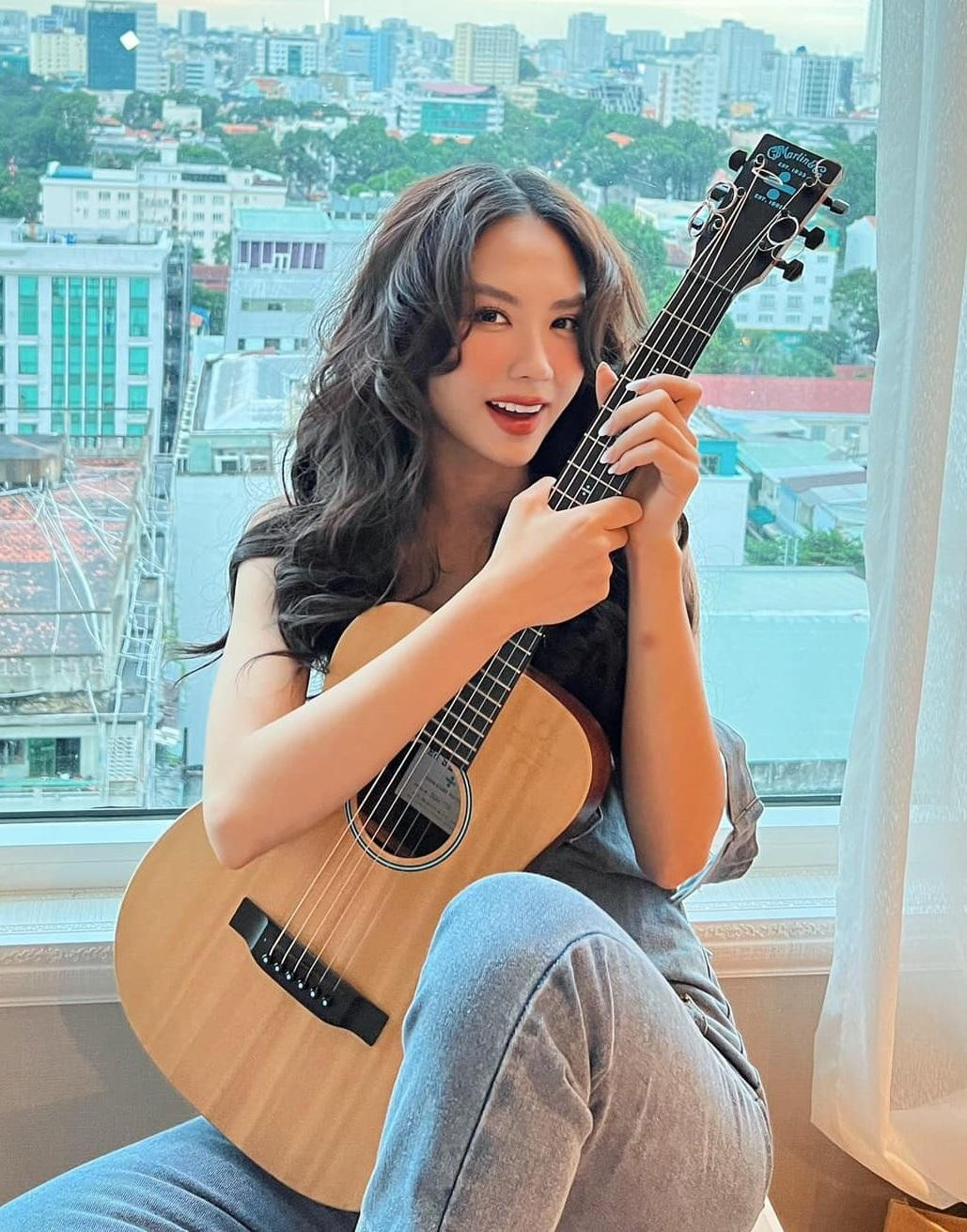 Chắc hẳn nhiều người sẽ không nhận ra đây chính là Hoa hậu Mai Phương. Mái tóc ép thẳng, mái bằng cũng lối trang điểm sắc sảo, nhấn mạnh vào đôi mắt đã biến nàng hậu trở thành một cô gái cực kỳ cá tính, khác hẳn một Mai Phương thanh thuần trong đêm Chung kết Hoa hậu Thế giới Việt Nam 2022.