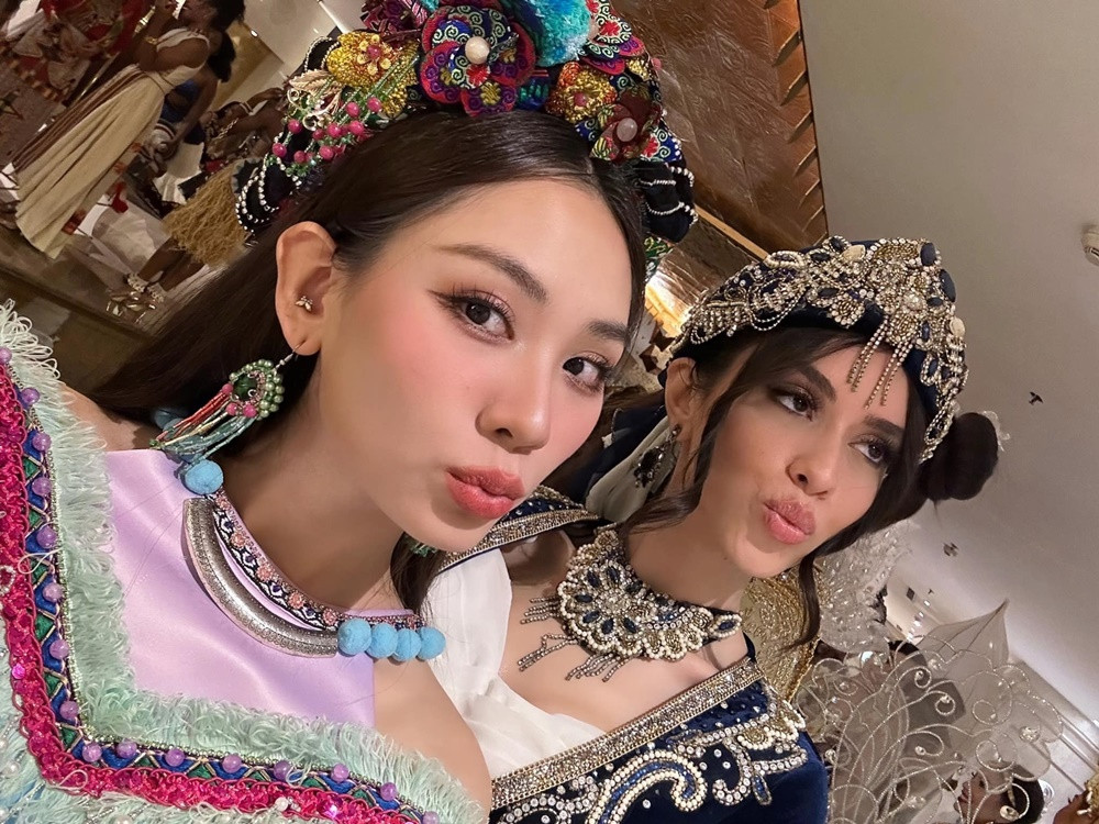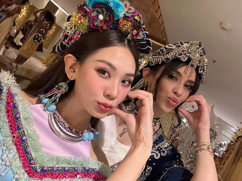Mai Phương và Hoa hậu Thổ Nhĩ Kỳ trước giờ tham dự lễ khai mạc. Năm nay Thổ Nhĩ Kỳ được xếp vào nhóm châu Á và được đánh giá là một ứng viên rất mạnh nhờ nhan sắc ấn tượng và profile cực đỉnh.