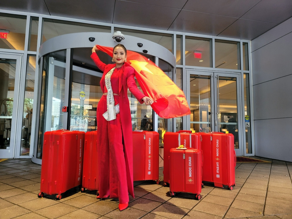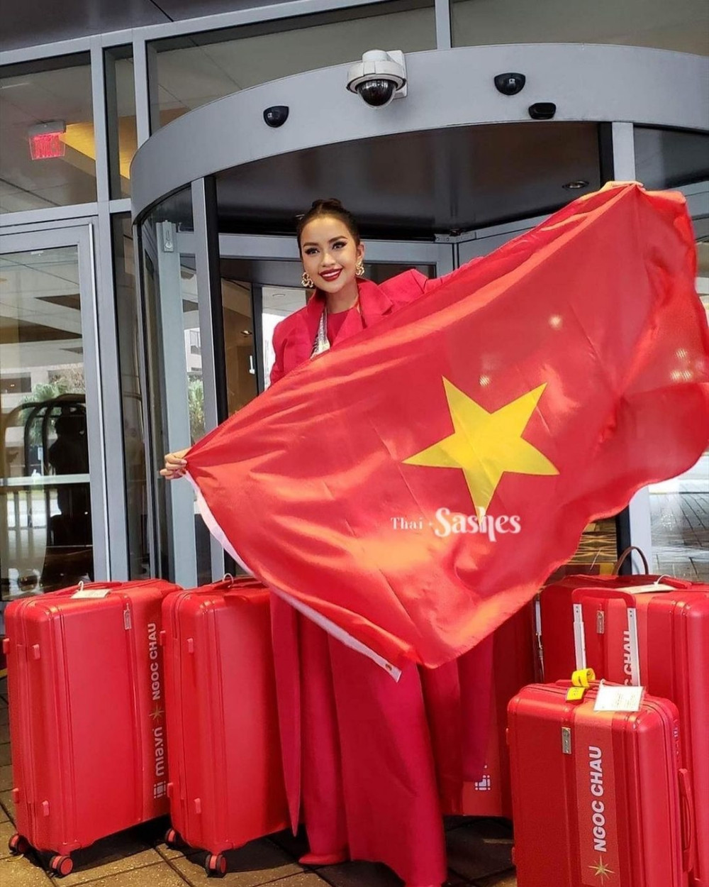 Hoa hậu Ngọc Châu đã có mặt tại địa điểm diễn ra Miss Universe (Hoa hậu Hoàn vũ) lần thứ 71 năm nay. Nàng hậu check in tại khách sạn mình ở trong trang phục màu đỏ, tiết lộ bạn cùng phòng là đại diện đến từ Nhật Bản.