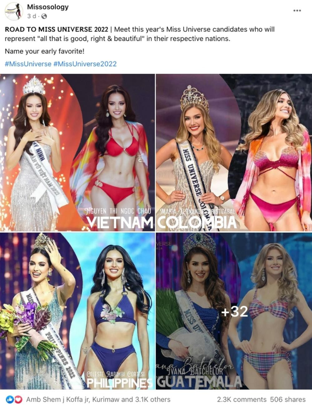 Cách đây ít ngày, chuyên trang Missosology cũng đăng loạt ảnh về các người đẹp đã chính thức ghi danh tại đấu trường Miss Universe 2022. Và cũng rất bất ngờ, loạt ảnh không hề theo thứ tự bảng chữ cái theo chiều ngược hay xuôi, nhưng ảnh của Hoa hậu Ngọc Châu lại được ưu ái chiếm vị trí đầu tiên. Có thể thấy nhan sắc của nàng hậu không hề thua kém so với các đại diện bên cạnh.