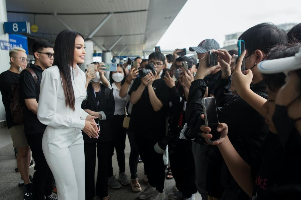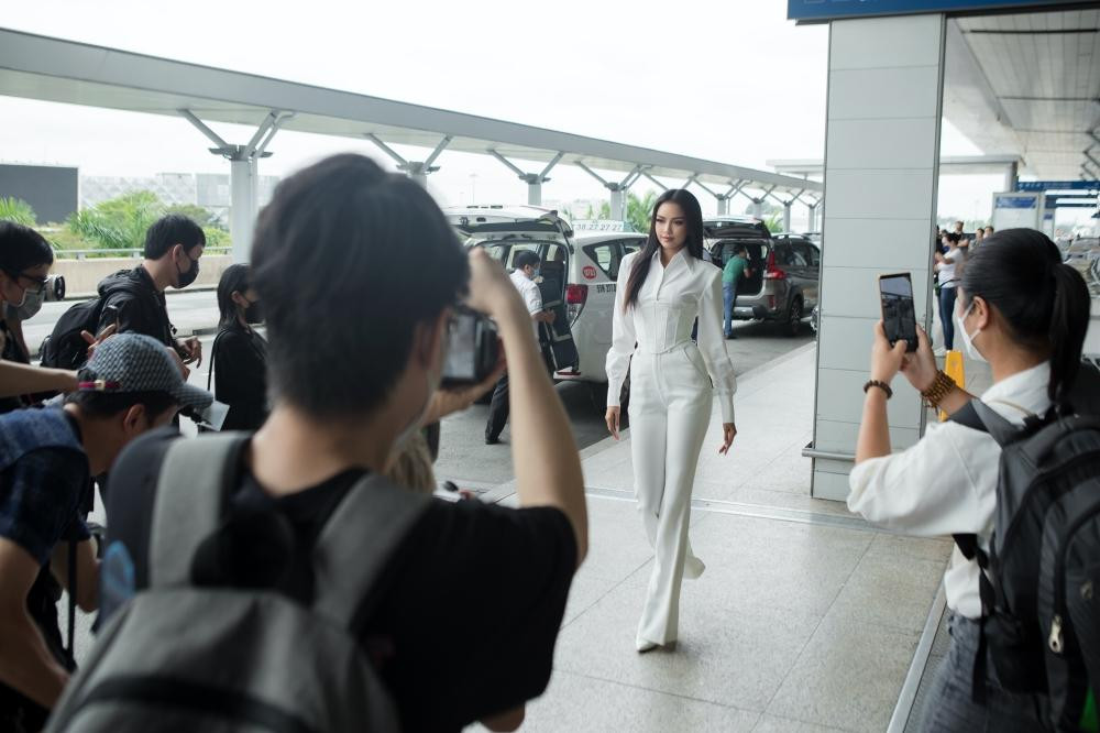Trước khi chuẩn bị làm thủ tục để khởi hành, Hoa hậu Hoàn vũ Việt Nam 2022 thể hiện màn catwalk tự tin ngay tại sân bay. Ngọc Châu đã sẵn sàng cho hành trình gần 3 tuần tập luyện liên tục tại nước bạn. Người đẹp hy vọng sẽ được gặp lại Miss Universe 2018 Catriona Gray để giao lưu, học hỏi thêm những kỹ năng và kinh nghiệm.