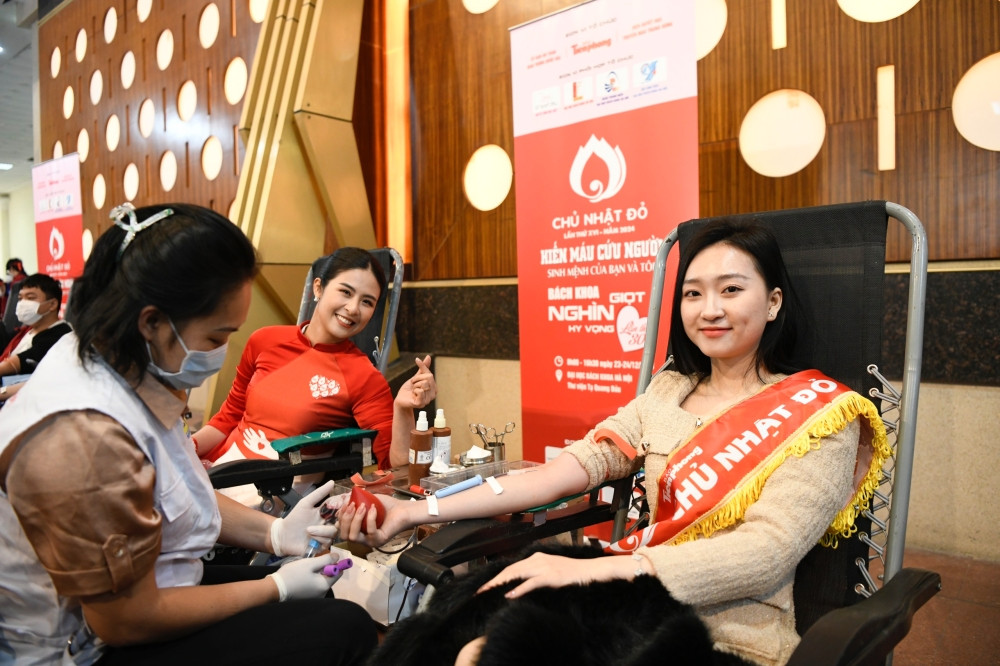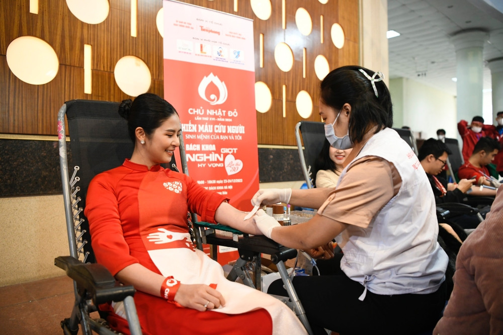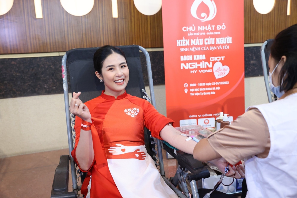 Đây cũng là lần thứ 10 Ngọc Hân tham gia hiến máu tại sự kiện Chủ Nhật Đỏ. Nàng hậu chia sẻ việc tham gia sự kiện không phải để làm hình ảnh, Ngọc Hân khẳng định cô và các người đẹp khác hiến máu với mong muốn lan tỏa một nghĩa cử đẹp tới mọi người.