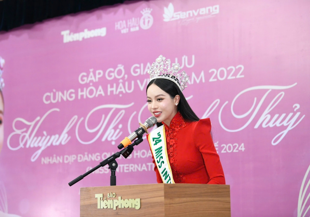 Hoa hậu Thanh Thủy tâm sự cô rất vui mừng khi trở lại báo Tiền Phong. Trước đó, trong buổi giao lưu tại TP.HCM, Thanh Thủy cho biết sau khi đăng quang cuộc thi Hoa hậu Việt Nam 2022 thì chiến thắng tại Hoa hậu Quốc tế 2024 tiếp tục là cột mốc đáng nhớ, không thể quên trong quãng thời gian thanh xuân của người đẹp. "Cảm xúc khi đăng quang Hoa hậu Quốc tế 2024 có nhiều điểm tương đồng với khi đăng quang Hoa hậu Việt Nam.", Thanh Thủy chia sẻ.