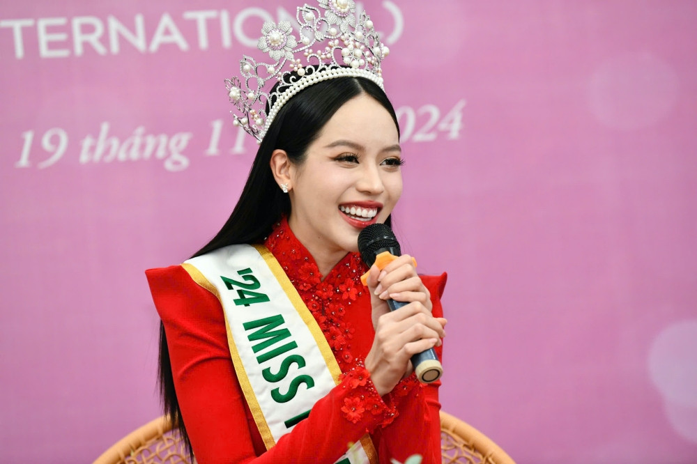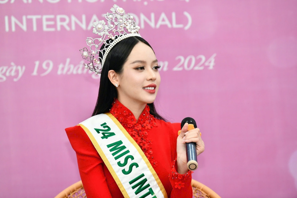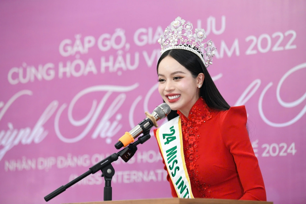 Phát biểu tại sự kiện, Hoa hậu Thanh Thủy tiết lộ khi tham gia Miss International 2024 và được các thí sinh khác hỏi về danh vị, người đẹp tự hào nói rằng mình là Hoa hậu Việt Nam, đây là cuộc thi lớn và có lịch sử lâu đời nhất tại Việt Nam.
