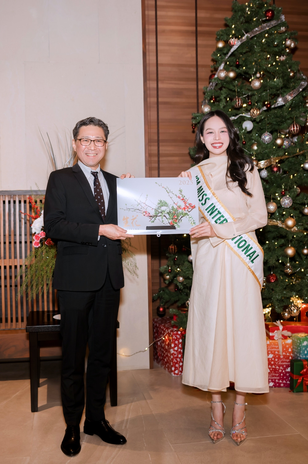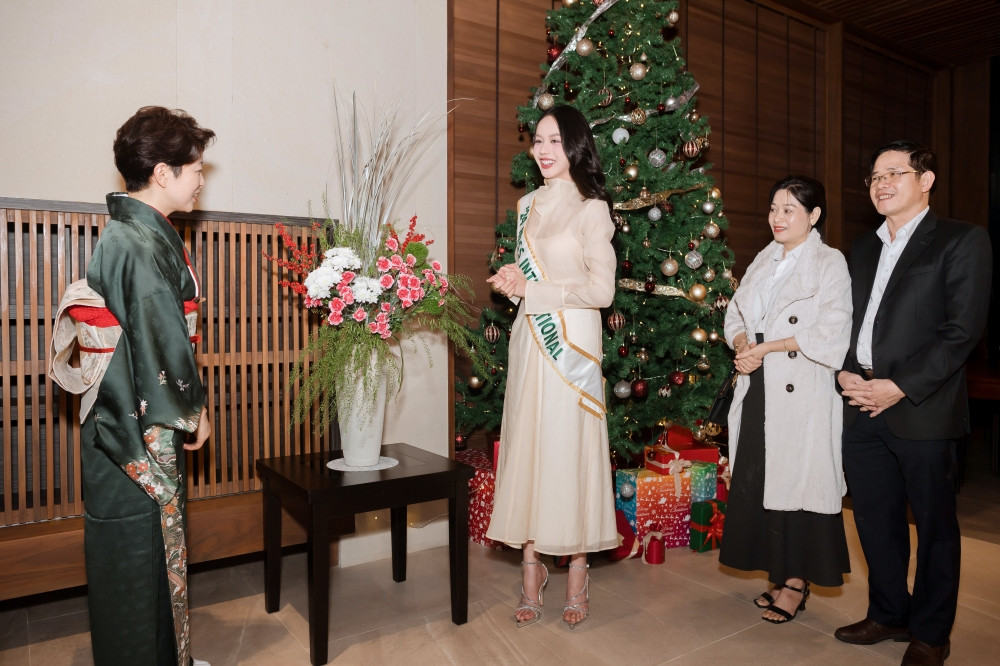 Mới đây, Hoa hậu Thanh Thủy cùng gia đình đã có buổi gặp gỡ và giao lưu cùng ngài Mori Takero - Tổng Lãnh sự Nhật Bản tại Đà Nẵng và phu nhân Mori Ino. Ông Mori Takero đã gửi lời chúc mừng Thanh Thủy, người con Đà Nẵng, vì chiến thắng thuyết phục tại cuộc thi Miss International 2024 diễn ra ở Nhật Bản.