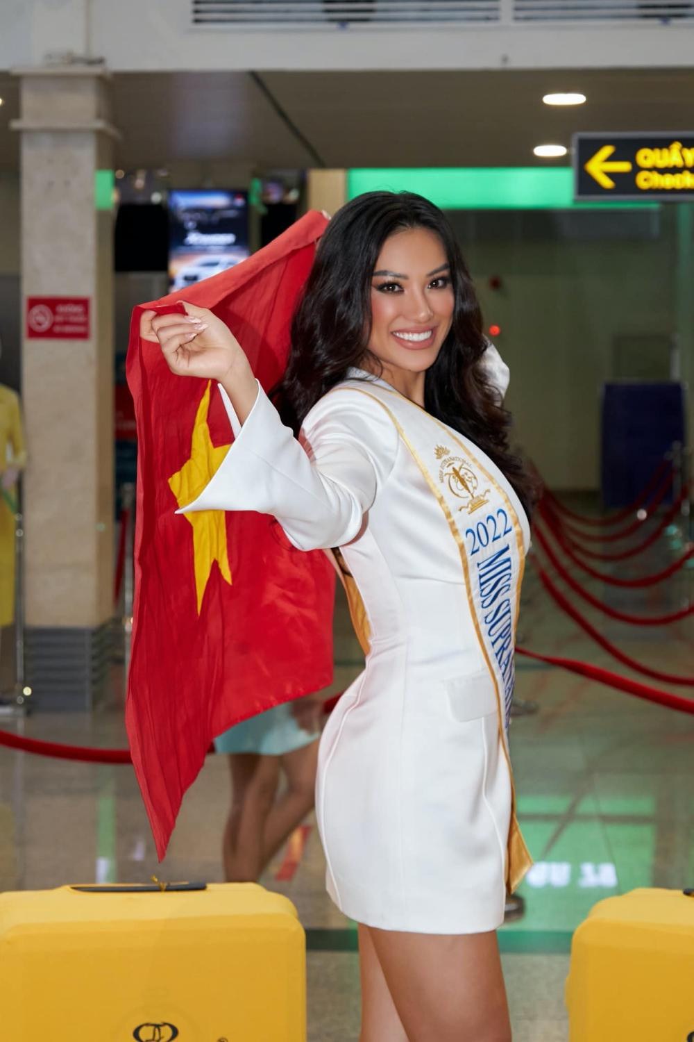 Trước khi Kim Duyên lên đường, Hoa hậu H’Hen Niê, Á hậu Hoàng My, Người đẹp biển Ngô Bảo Ngọc đã có mặt tại sân bay Tân Sơn Nhất để ủng hộ cô.