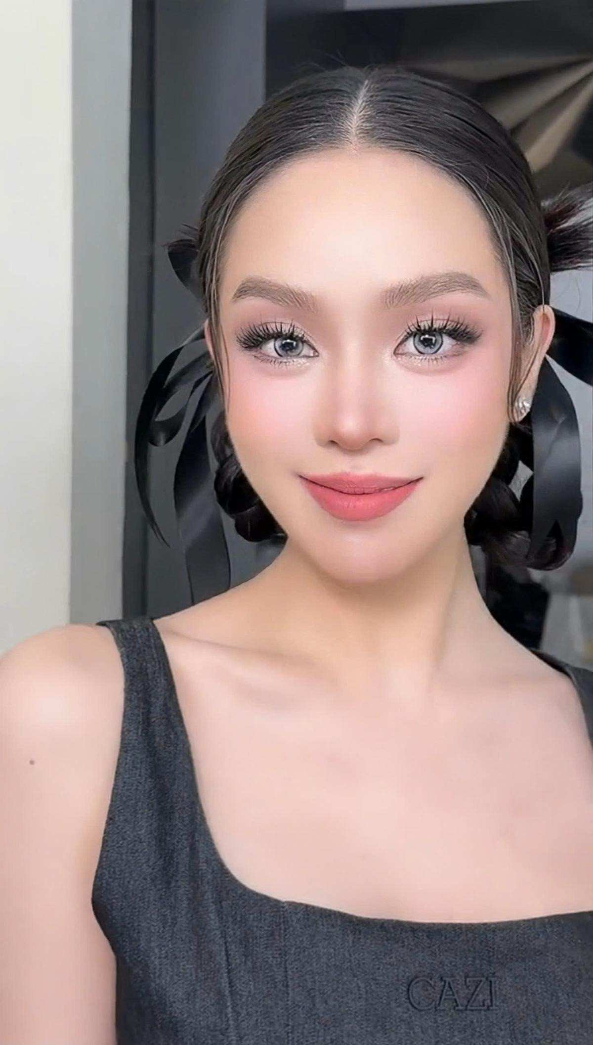 Thanh Thủy còn tết tóc hai bên rồi thắt nơ nhìn càng trẻ trung, nhí nhảnh. Tạo hình mới mẻ của nàng hậu được cư dân mạng khen ngợi hết lời vì rất khác lạ, xinh đẹp. Nhờ ngũ quan hài hòa, làn da mịn màng nên Hoa hậu Thanh Thủy chọn layout trang điểm nào cũng hợp.