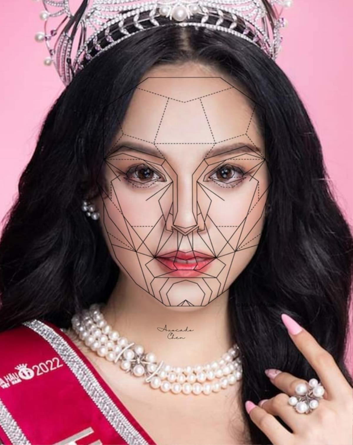Nhiều netizen quyết định kiểm chứng bằng cách mang ảnh chân dung Hoa hậu Thanh Thủy so với bảng khung tỷ lệ vàng. Quả thực các đường nét của Thanh Thủy gần như trùng khớp với bảng này, giúp Hoa hậu Việt Nam 2022 sở hữu gương mặt lý tưởng hơn cả đàn chị Tiểu Vy.