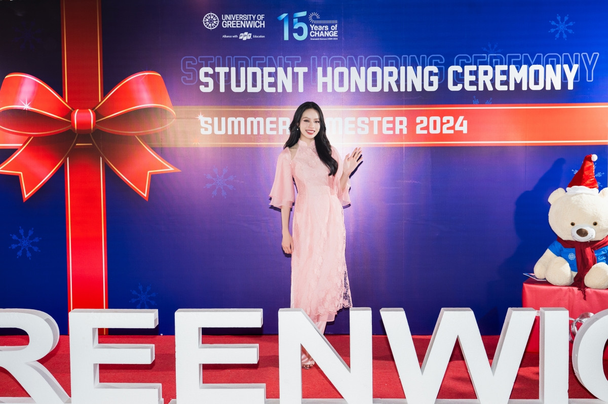 Buổi lễ nhằm vinh danh những sinh viên có thành tích xuất sắc trong học kỳ mùa Hè của Greenwich Việt Nam. Hoa hậu Thanh Thủy, hiện là sinh viên ngành Quản trị Kinh doanh của trường, không chỉ nỗ lực trong học tập mà còn góp phần nâng cao hình ảnh Việt Nam trên đấu trường nhan sắc quốc tế. Cô vừa đạt thành tích cao nhất tại cuộc thi Hoa hậu Quốc tế 2024 tại Nhật Bản.