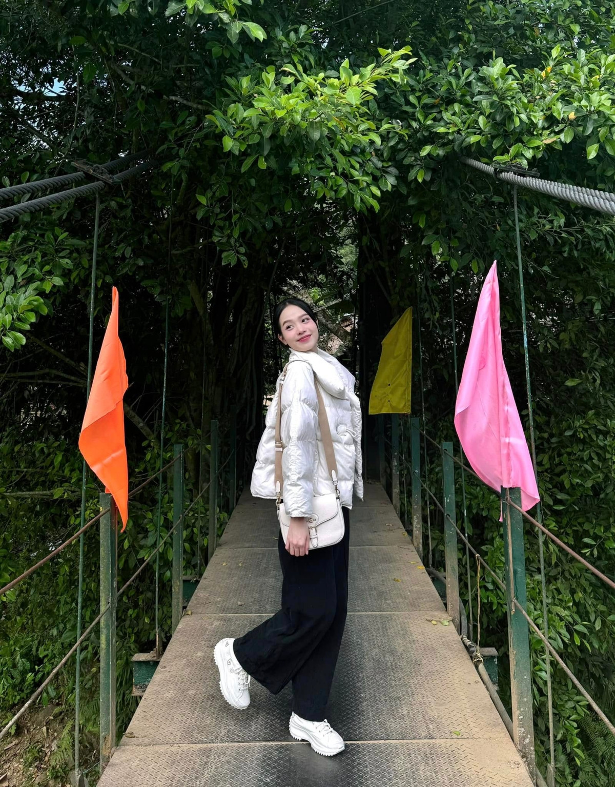 Trong các trang phục thường ngày, nàng hậu chọn túi đơn giản, đúng trend giới trẻ.