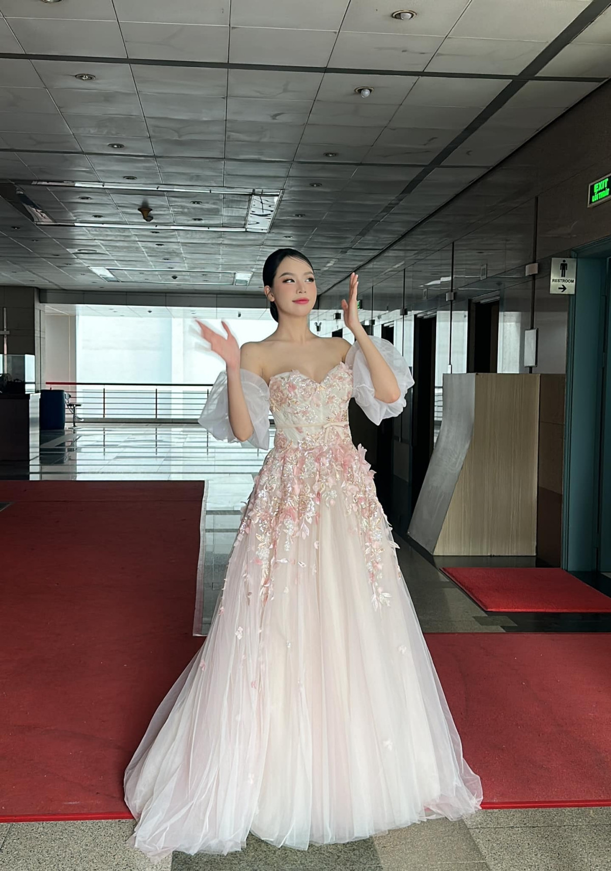 Loạt ảnh không được chụp tại một thảm đỏ sự kiện cũng không phải trong studio, càng không phải là một nơi lộng lẫy xa hoa. Địa điểm được Hoa hậu Thanh Thủy chụp bộ ảnh là khu vực hành lang công cộng khá tối, nhưng có thể nhận thấy nhan sắc của nàng hậu “sáng bừng”, xinh đẹp ngọt ngào như một nàng công chúa dù cho phông nền không lý tưởng.