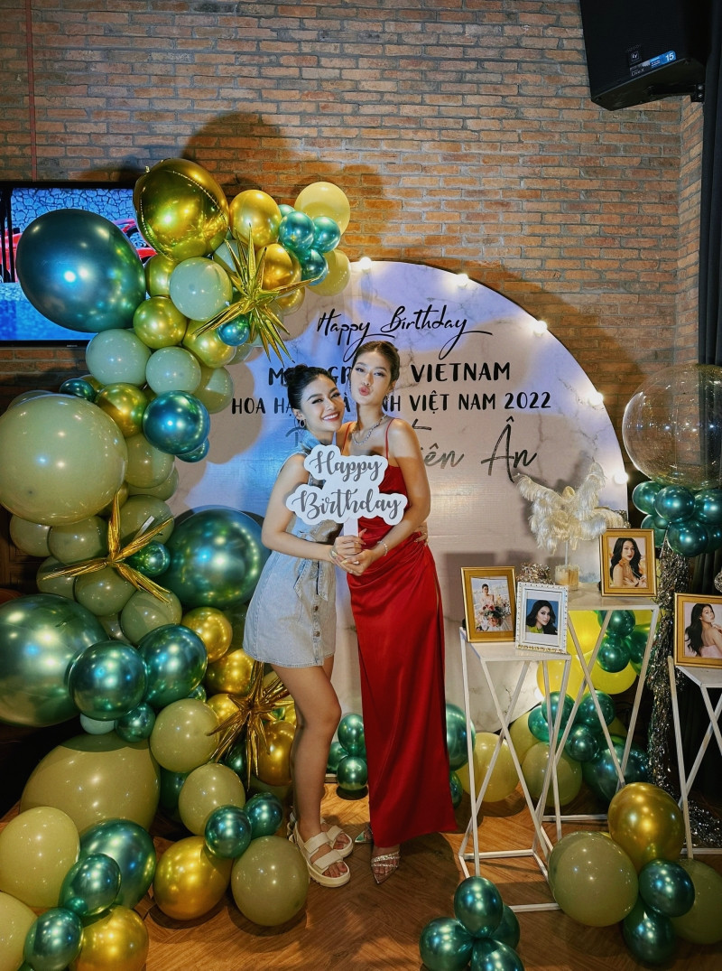 HHTO - Đây là sinh nhật đầu tiên của Thiên Ân sau khi đăng quang Miss Grand Vietnam 2022. Buổi tiệc có sự góp mặt của Hoa hậu Tiểu Vy, Lương Thùy Linh, Á hậu Ngọc Thảo, Ngọc Hằng, Trịnh Thùy Linh, Lona Kiều Loan, siêu mẫu Hà Anh, MC Phí Linh.