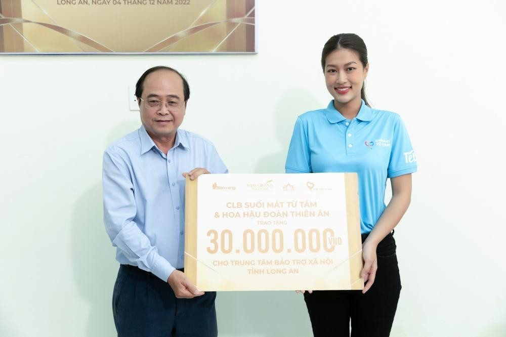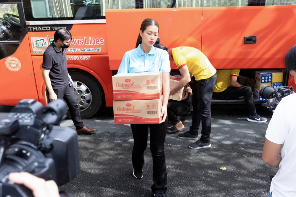 Đồng thời nàng hậu cũng đã trao tặng 30 triệu đồng tiền mặt cùng các nhu yếu phẩm như sữa, bánh, nước trái cây, dầu gội… đến các hoàn cảnh khó khăn tại Trung tâm bảo trợ tỉnh Long An.