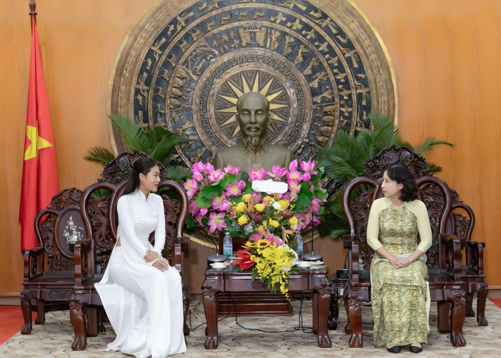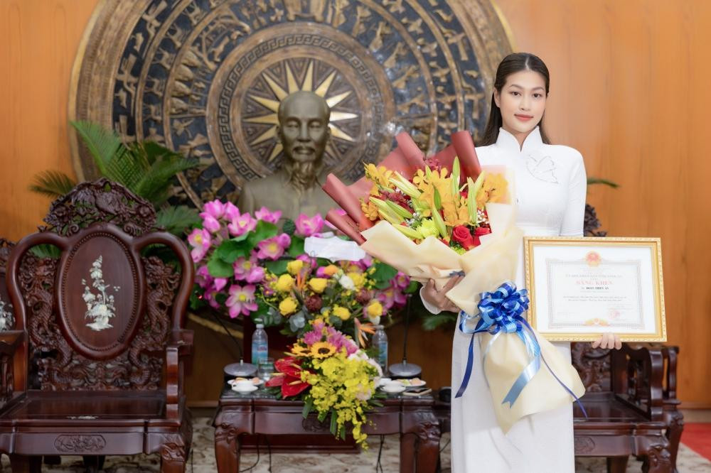 Thiên Ân đã có dịp gặp gỡ và chào hỏi lãnh đạo tỉnh Long An trong đó có các đại diện đến từ Hội Liên Hiệp Phụ Nữ tỉnh, Sở Văn hóa Thể thao tỉnh, Sở Lao động - Thương binh và Xã hội tỉnh. Cô cũng được phía lãnh đạo trao bằng khen sau khi mang thành tích về cho quê hương.