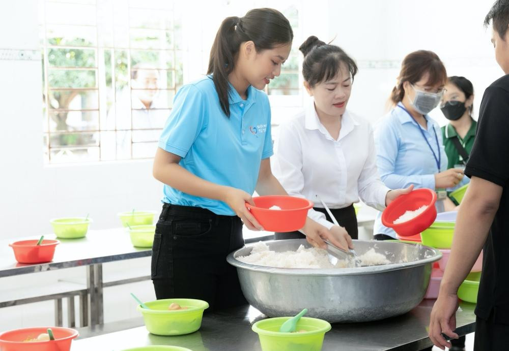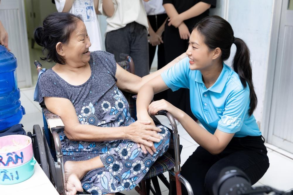 Tiếp tục công tác thiện nguyện, nàng hậu di chuyển đến Trung tâm Bảo trợ tỉnh Long An để thăm hỏi những hoàn cảnh đặc biệt khó khăn và tổ chức bếp ăn tình thương với 400 suất ăn dinh dưỡng, dành tặng cho những người già neo đơn, trẻ em cơ nhỡ và người tâm thần tại trung tâm.