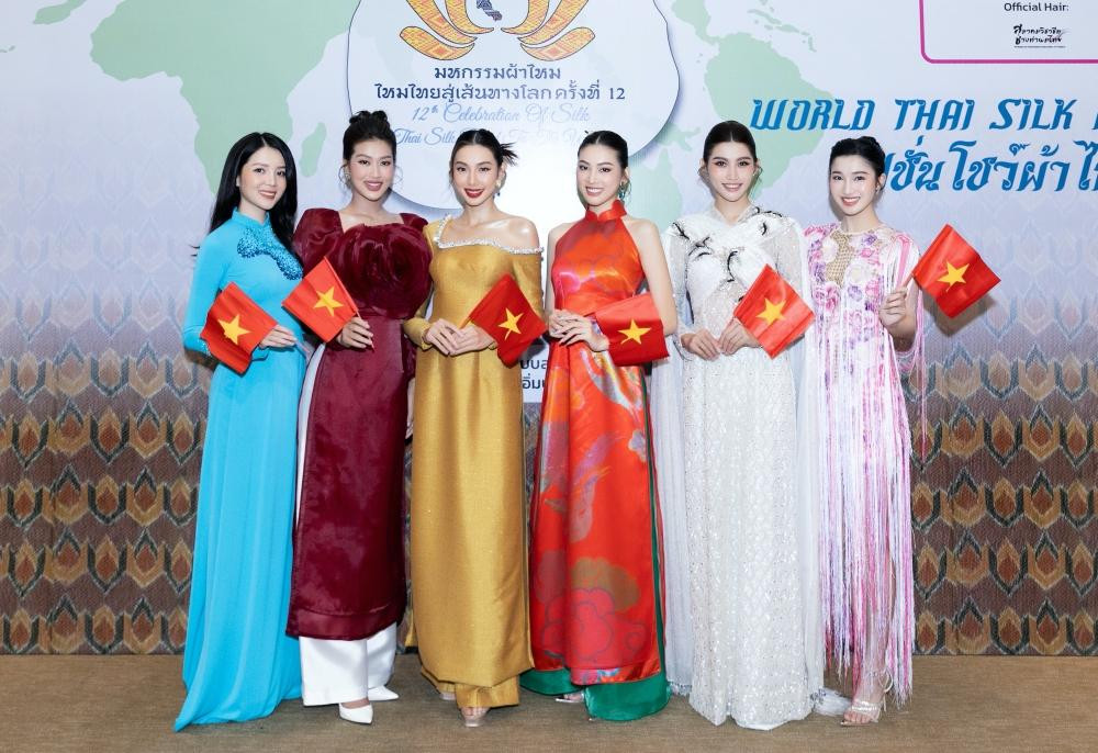 Tại Lễ khai mạc của Tuần lễ Thời trang lụa Thái quốc tế, các nàng hậu đã chọn mặc trang phục áo dài truyền thống nhằm quảng bá nét văn hóa Việt ra thế giới. Sự xuất hiện của dàn người đẹp đã thu hút nhiều sự quan tâm của các nước có mặt trong chương trình.