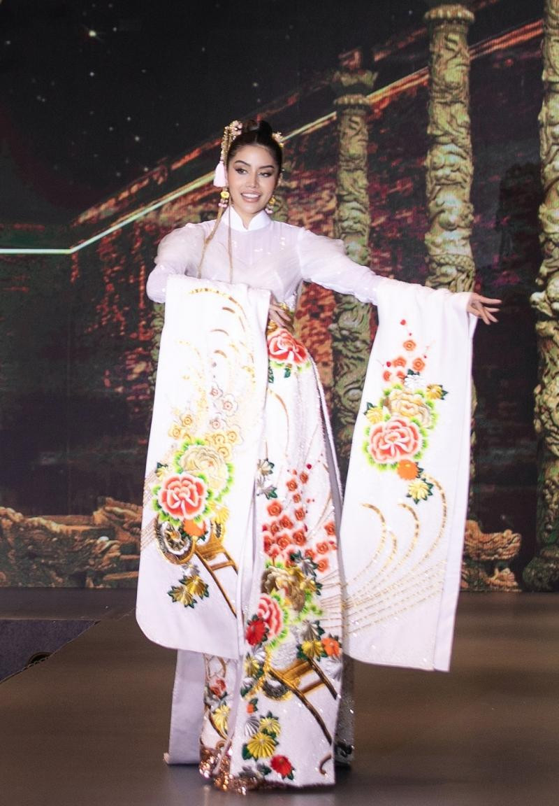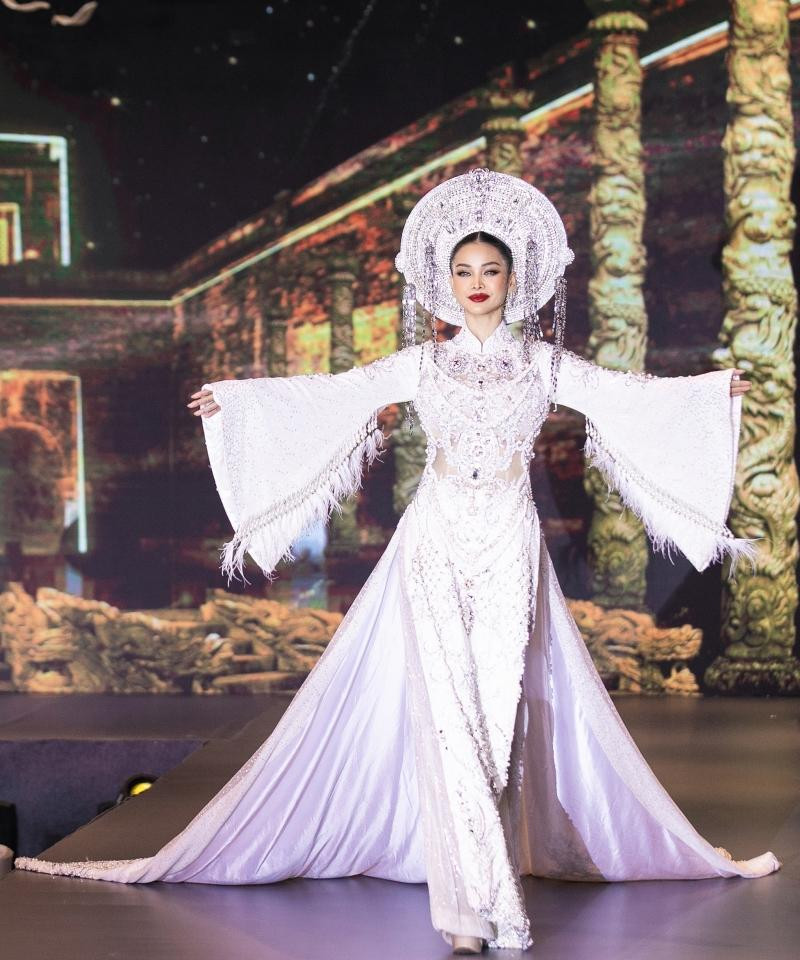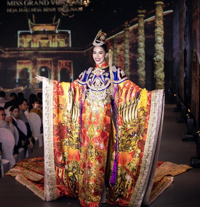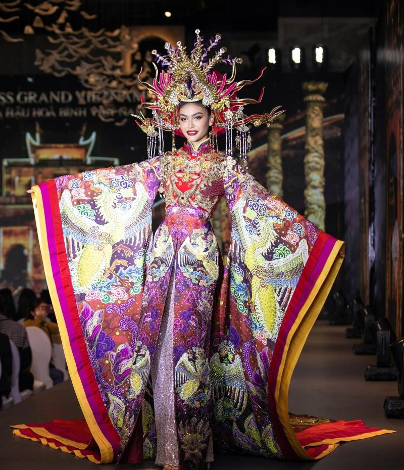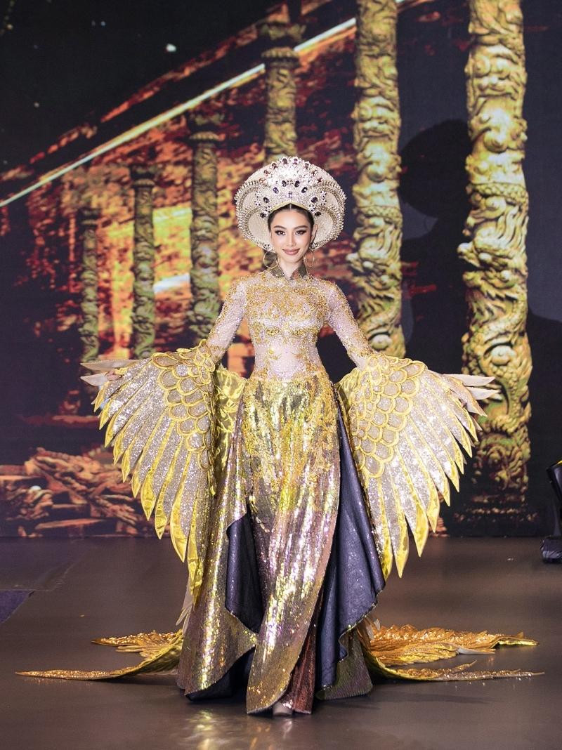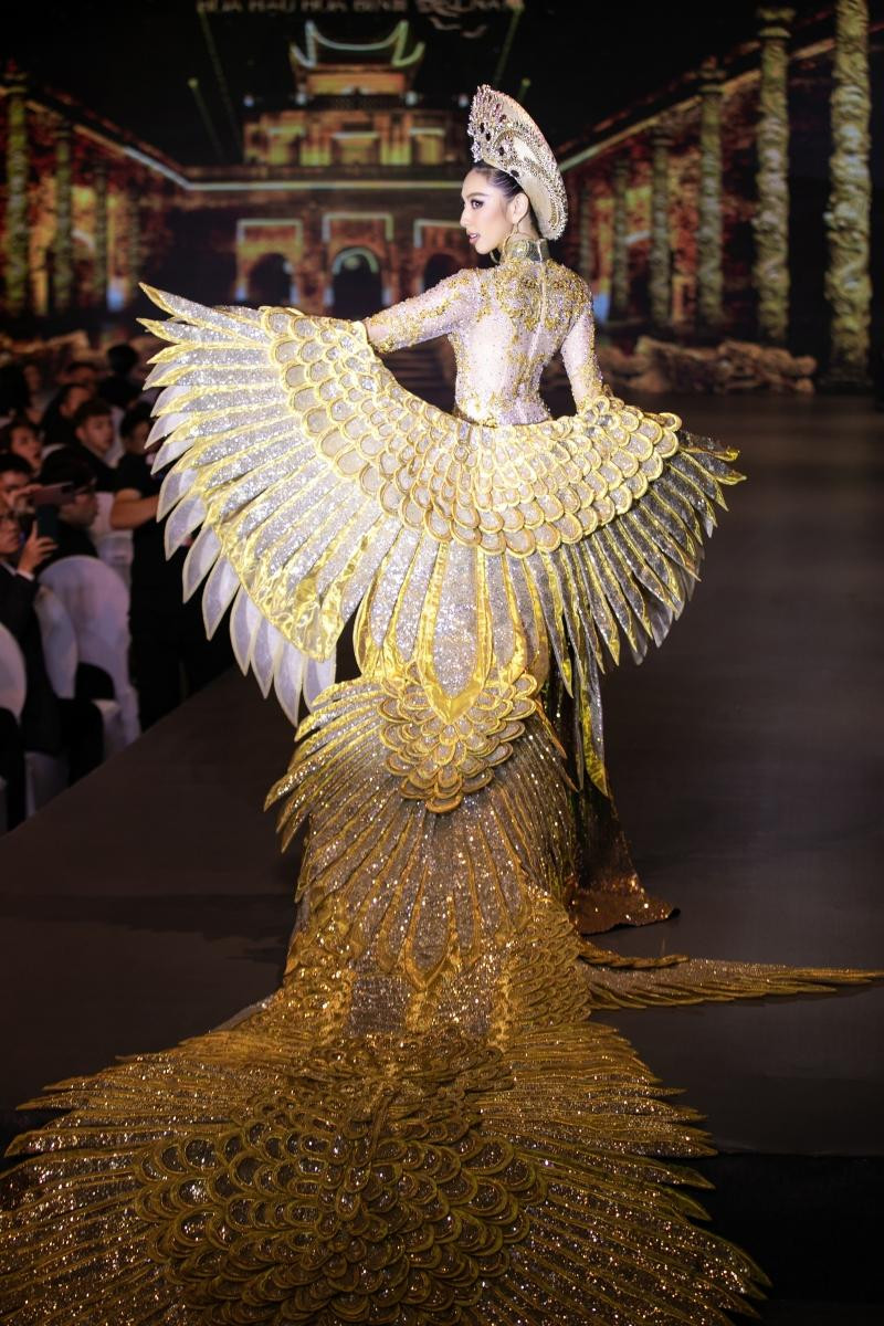 Hoa hậu Thùy Tiên lộng lẫy trong thiết kế áo dài lấy cảm hứng từ chim phượng hoàng.