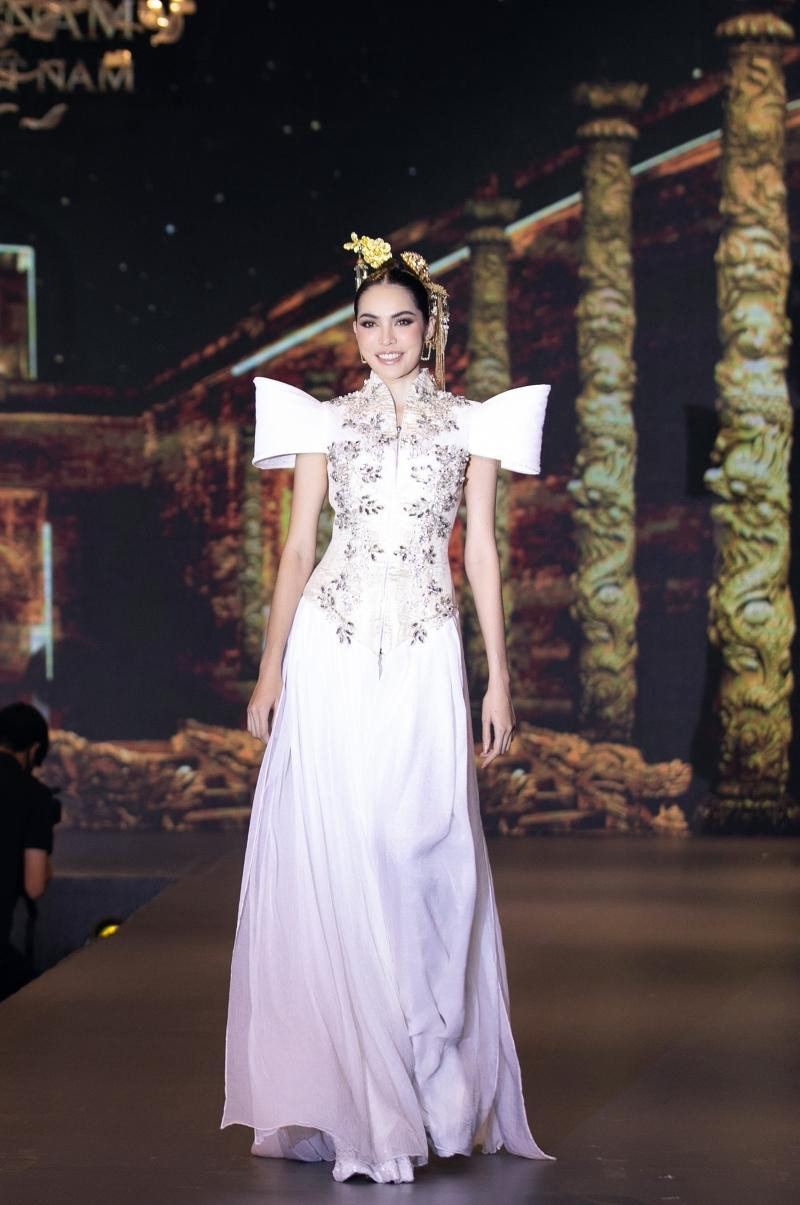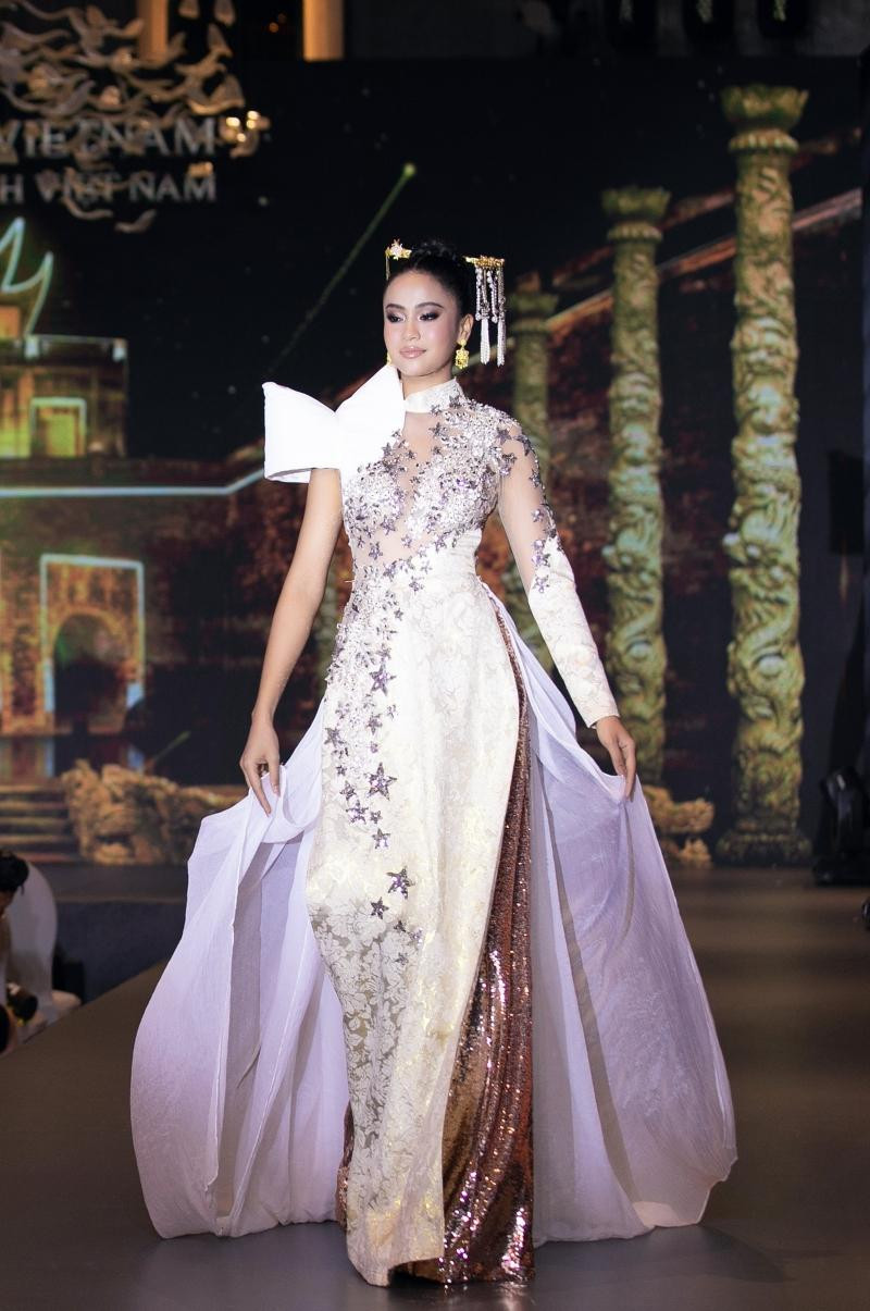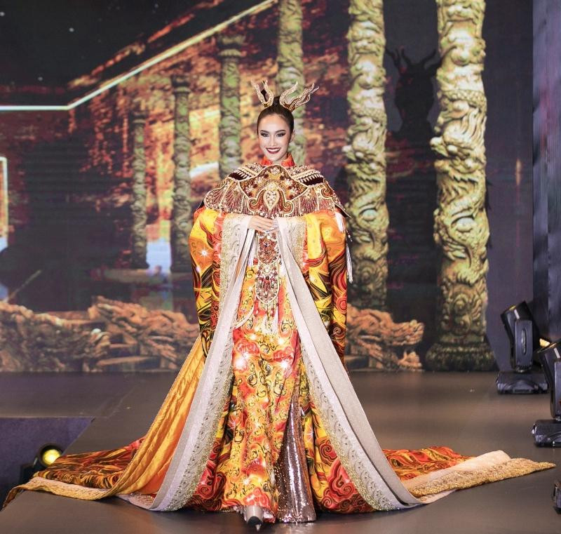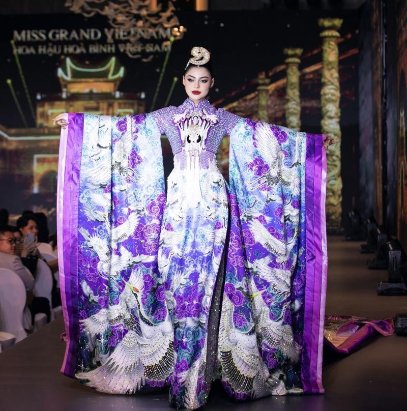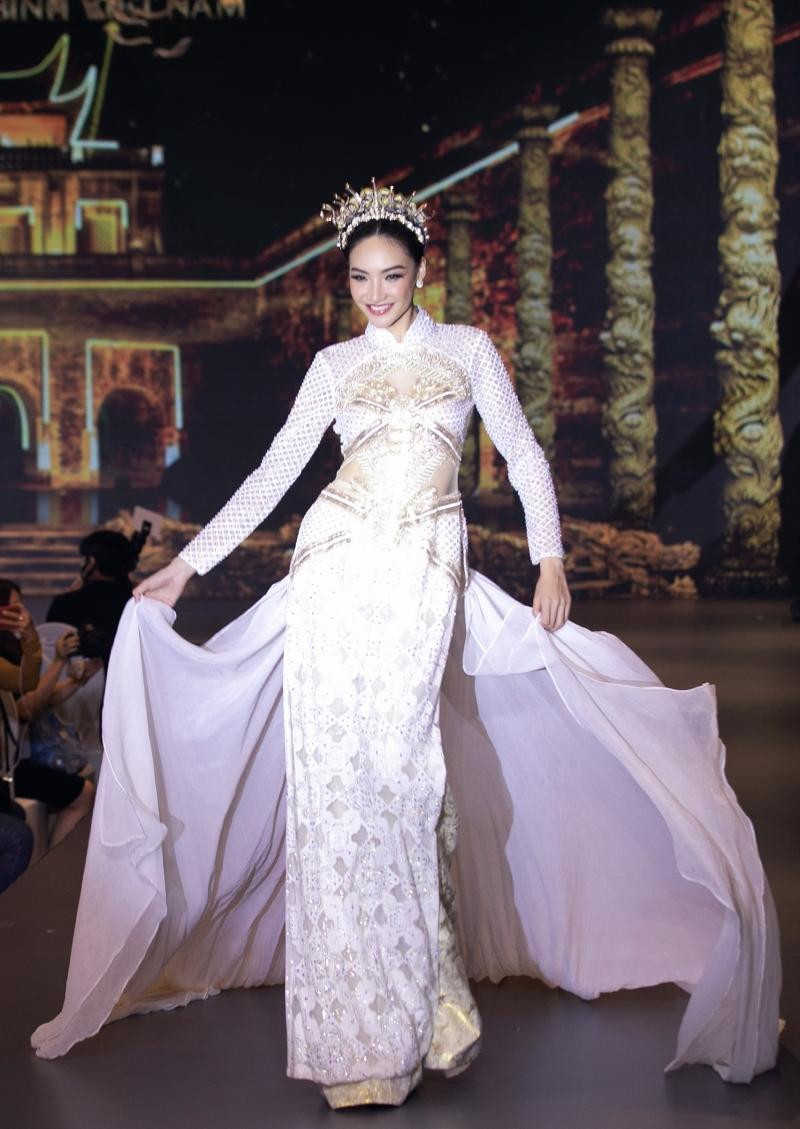 Hoa hậu Thùy Tiên lộng lẫy trong thiết kế áo dài lấy cảm hứng từ chim phượng hoàng.
