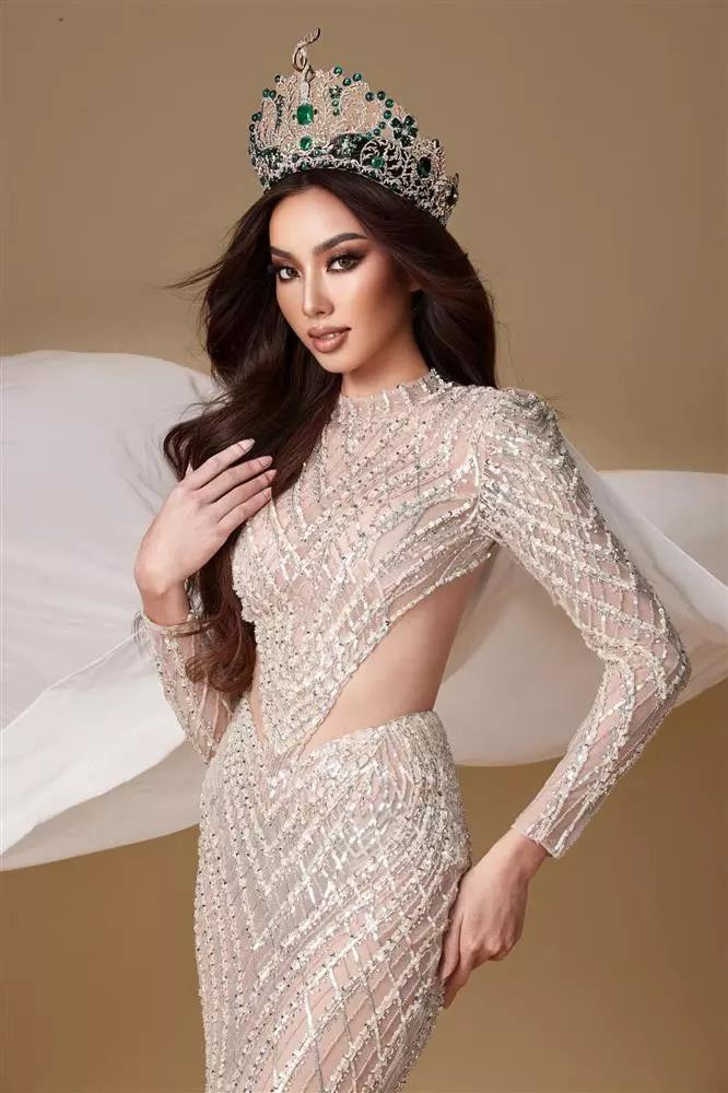 Đến khi được chọn đại diện Việt Nam chinh chiến tại Miss Grand International 2021, Thùy Tiên được công ty Sen Vàng chọn cho một chiếc vương miện khá cầu kỳ với màu trắng toàn tập trong bộ ảnh giới thiệu tới ban tổ chức.
