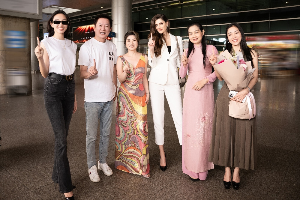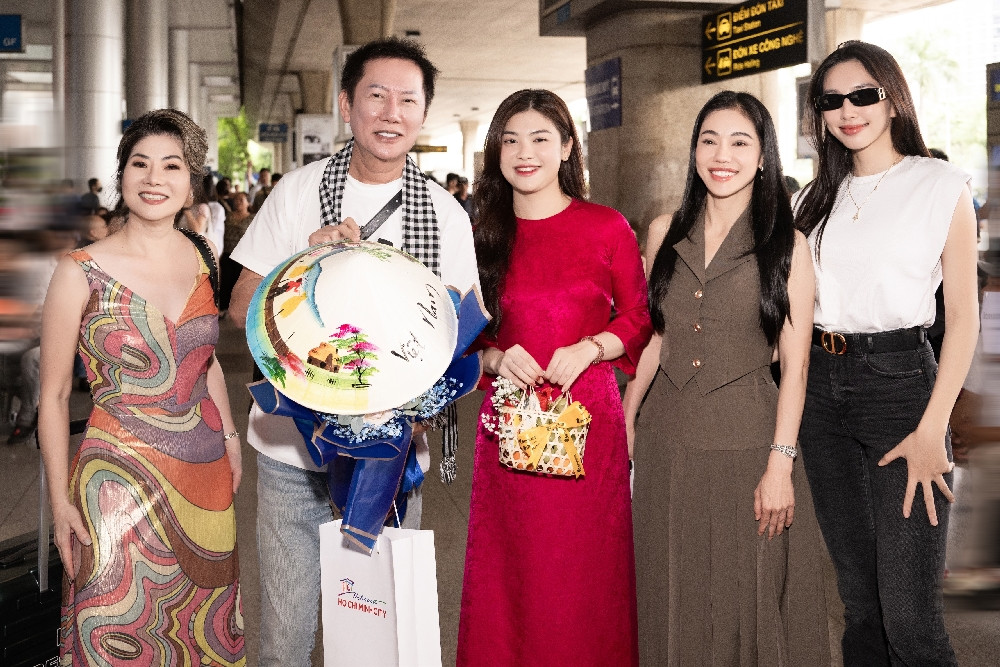Hoa hậu Thùy Tiên tặng hoa cho Chủ tịch tổ chức MGI, ông Nawat quay lại TP.HCM sau chuyến công tác ngắn ngày tại Thái Lan.