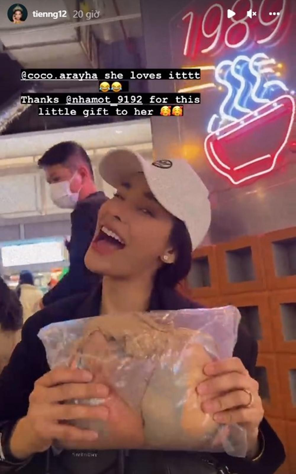 Sau khi khoe chiếc váy màu pastel ôm sát cách đây 2 ngày, Hoa hậu Thùy Tiên đã chia sẻ rằng Miss Grand Thái Lan 2019 Coco Arayha Suparurk tỏ ra rất thích chiếc váy và muốn mua lại.