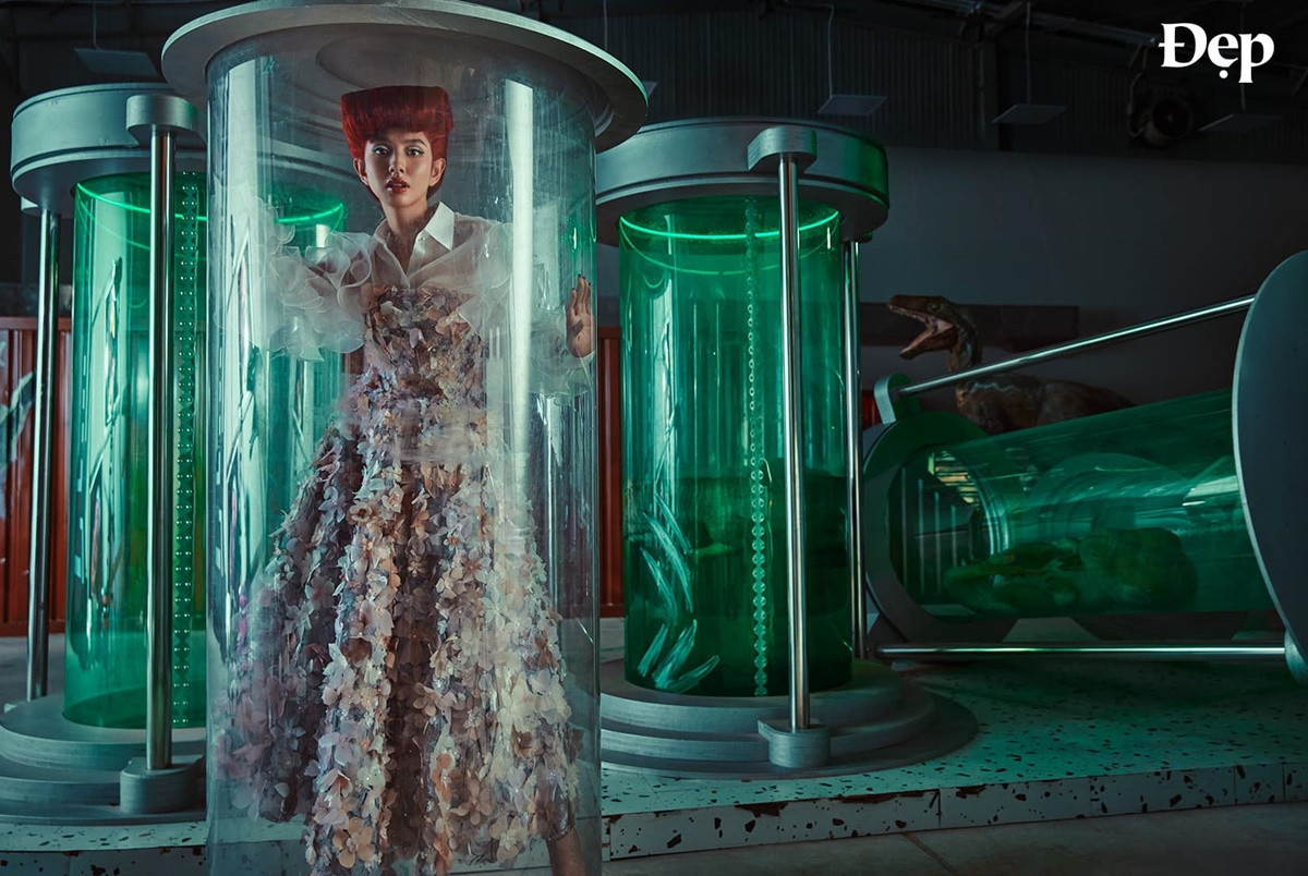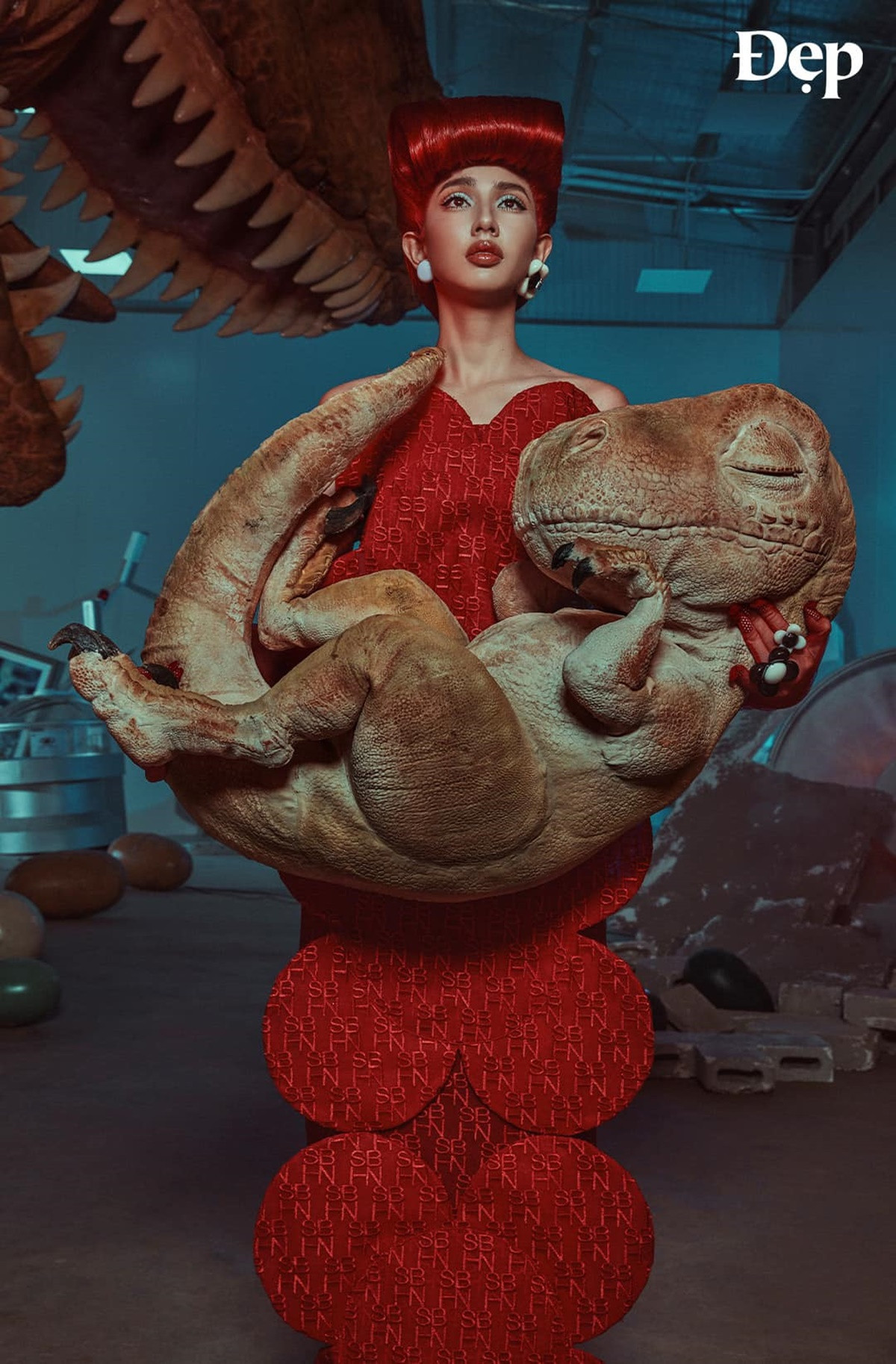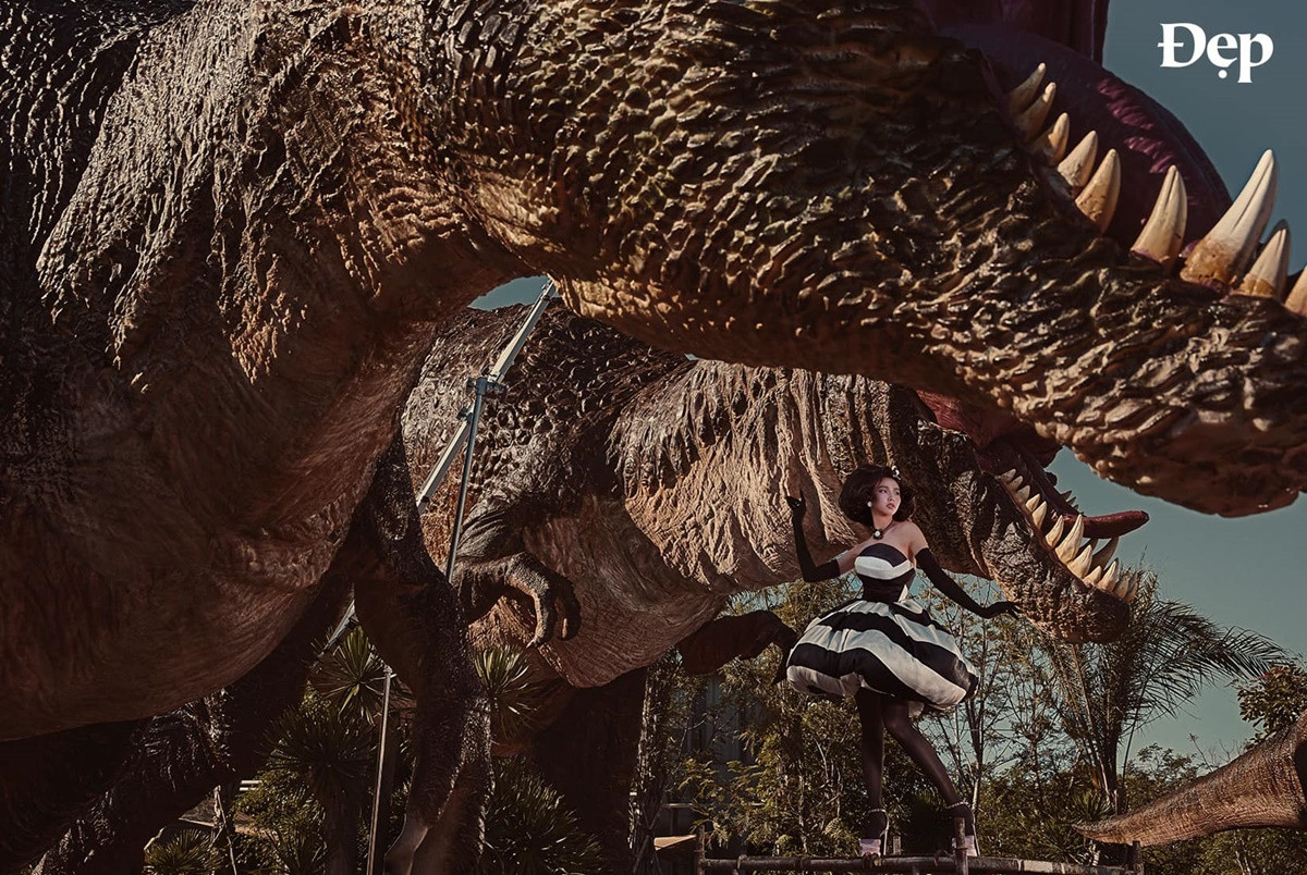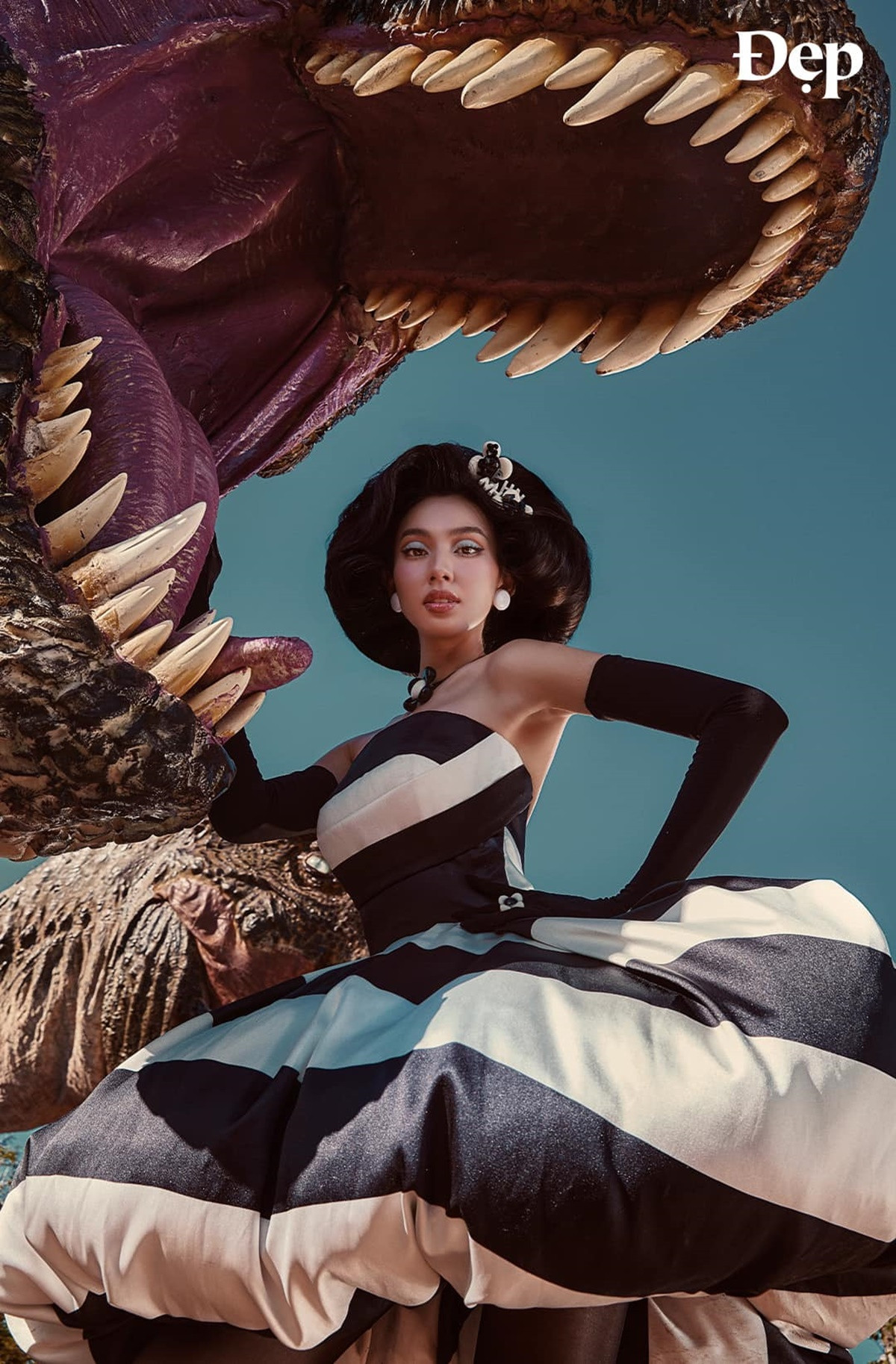Hoa hậu Thùy Tiên được mời làm gương mặt trang bìa cho tạp chí Đẹp đầu năm, người đẹp mặc trang phục và làm tóc mang đậm tinh thần vị lai (Futurism), nhưng lại thực hiện bộ ảnh tại công viên khủng long, loài vật của quá khứ.