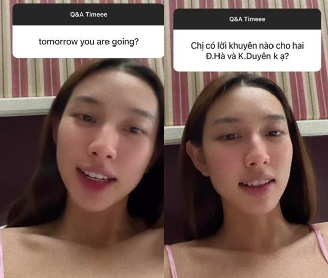 Trước đó, Thùy Tiên cũng từng chia sẻ trước truyền thông: "Thùy Tiên một cô gái Top 5 đi thi nhưng đã giành được vương miện. Tiên làm được thì chắc chắn Duyên và Hà sẽ làm được. Cả hai bạn cố gắng hết sức mình thì dù kết quả có như thế nào, Việt Nam cũng tự hào về hai bạn."