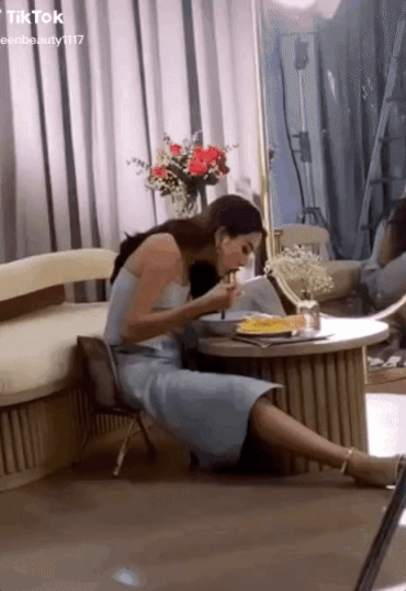 Mới đây, Thùy Tiên lại lộ diện trong một video hài hước không kém. Đương kim Hoa hậu Hòa bình Quốc tế ngồi ăn trên một chiếc ghế nhỏ xíu, rất thấp khiến cho cô phải duỗi dài chân ra để ăn cho thoải mái. Tuy cách ngồi này khá bất tiện, nhất là khi Thùy Tiên đang mặc váy điệu đà nhưng cư dân mạng đều thích thú trước phong cách vô tư, hồn nhiên của cô khi xả vai Hoa hậu.