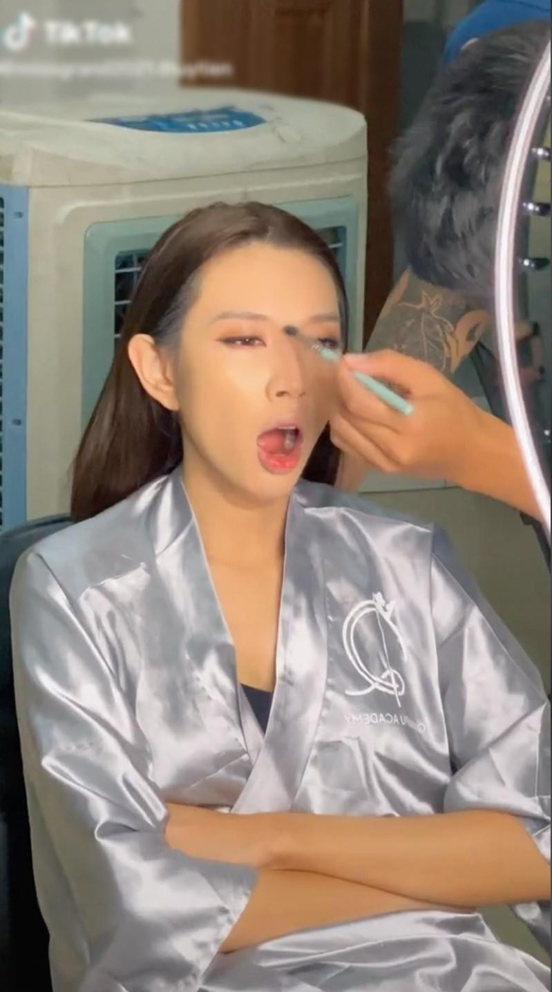 Một lần khác, do lịch trình dày đặc nên Thùy Tiên đã mệt mỏi và không dừng được việc ngáp ngủ khi đang chờ trang điểm. Người đẹp khác có thể ngại khoảnh khắc này lên sóng nhưng Thùy Tiên thì không, cô vẫn sẵn sàng chia sẻ với khán giả những hình ảnh đời thường của mình, dù có thiếu lung linh nhưng lại thừa gần gũi.