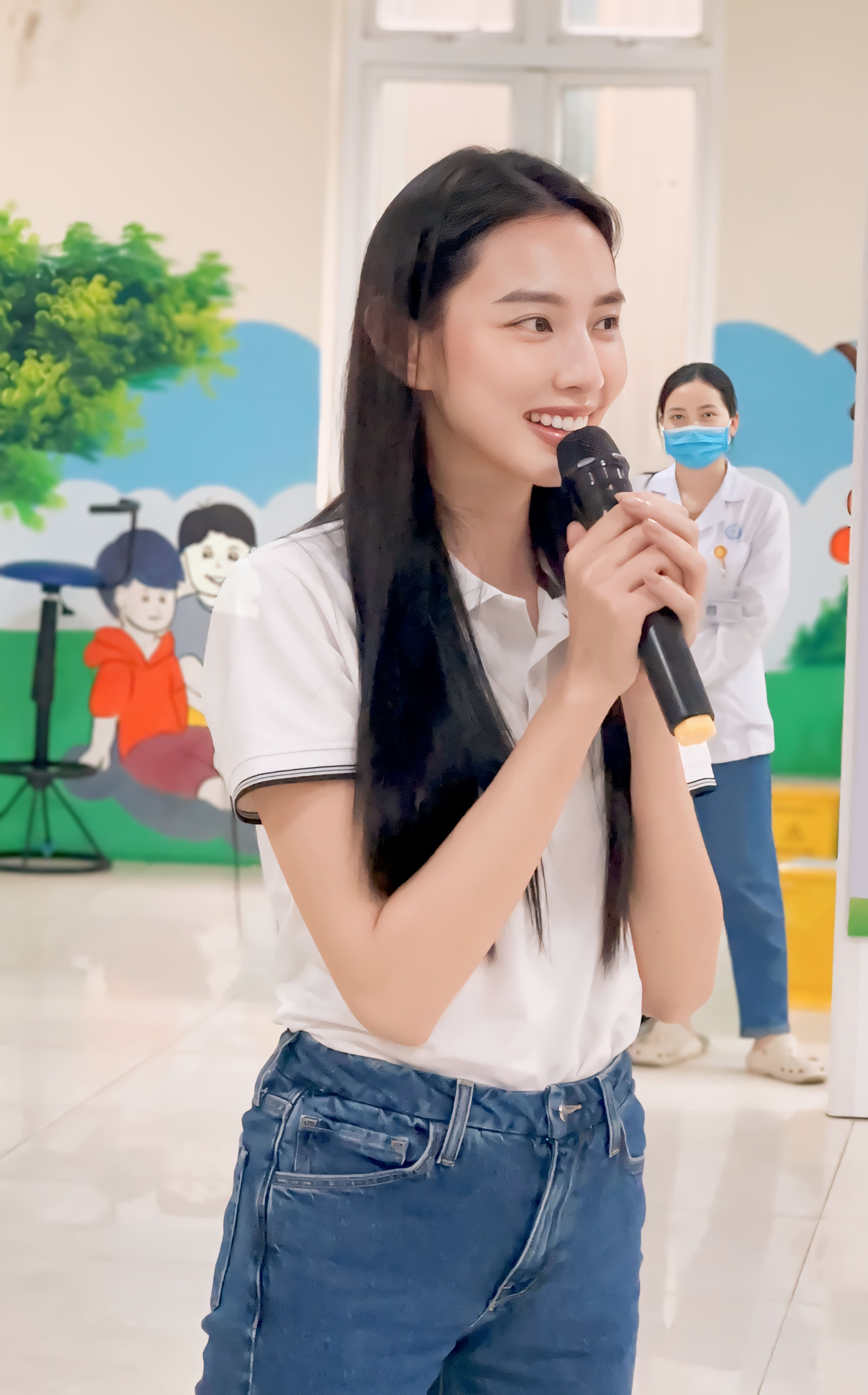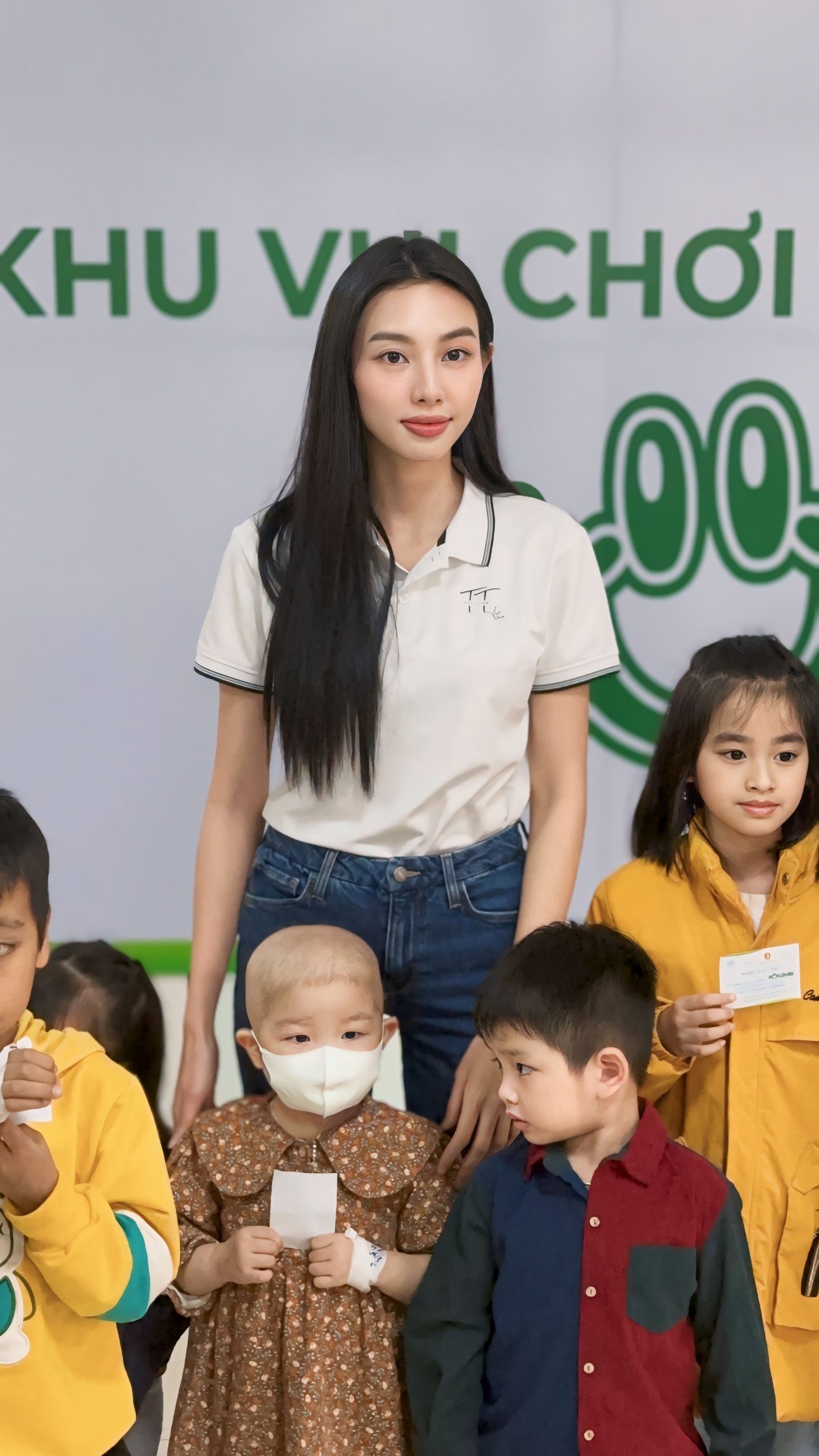 Sau lịch trình dày đặc, Hoa hậu Thùy Tiên đã dành thời gian đến Bệnh viện Nhi Thanh Hoá để nghiệm thu sân chơi cùng với sự giúp sức của Hội đồng Đội T.Ư. Không chỉ mang đến một sân chơi thiết thực, Thuỳ Tiên và đoàn công tác đã trao tặng những phần quà đến các em nhỏ tại đây.
