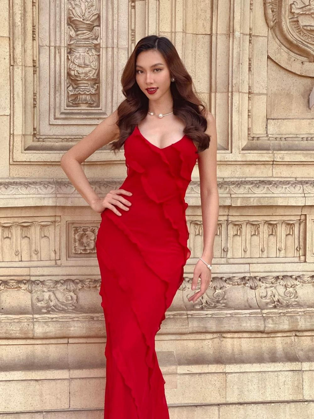 Sau đó khi tham gia một buổi hòa nhạc tại nhà hát Royal Albert Hall, Hoa hậu Thùy Tiên lại “biến hóa” vô cùng quyến rũ với chiếc váy dạ hội dài màu đỏ rực.