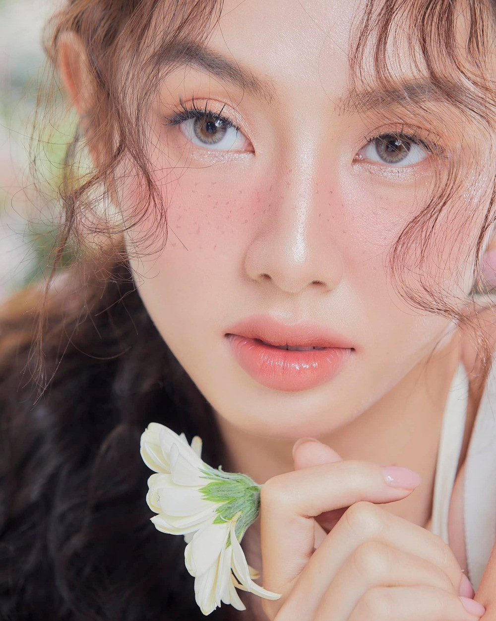Thời gian gần đây, Thùy Tiên cũng thử sức với tạo hình trong veo vốn được nhiều sao Hàn ưa chuộng. Như bộ ảnh mới nhất của nàng hậu đã khiến khán giả nhận không ra vì quá khác biệt. Không chỉ trang điểm theo tông hồng cam ngọt ngào, Thùy Tiên còn tự tin khoe ảnh cận mặt.
