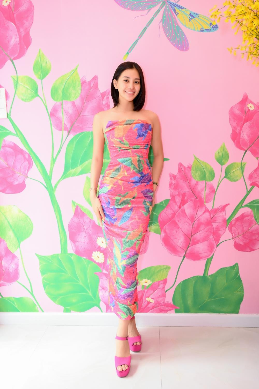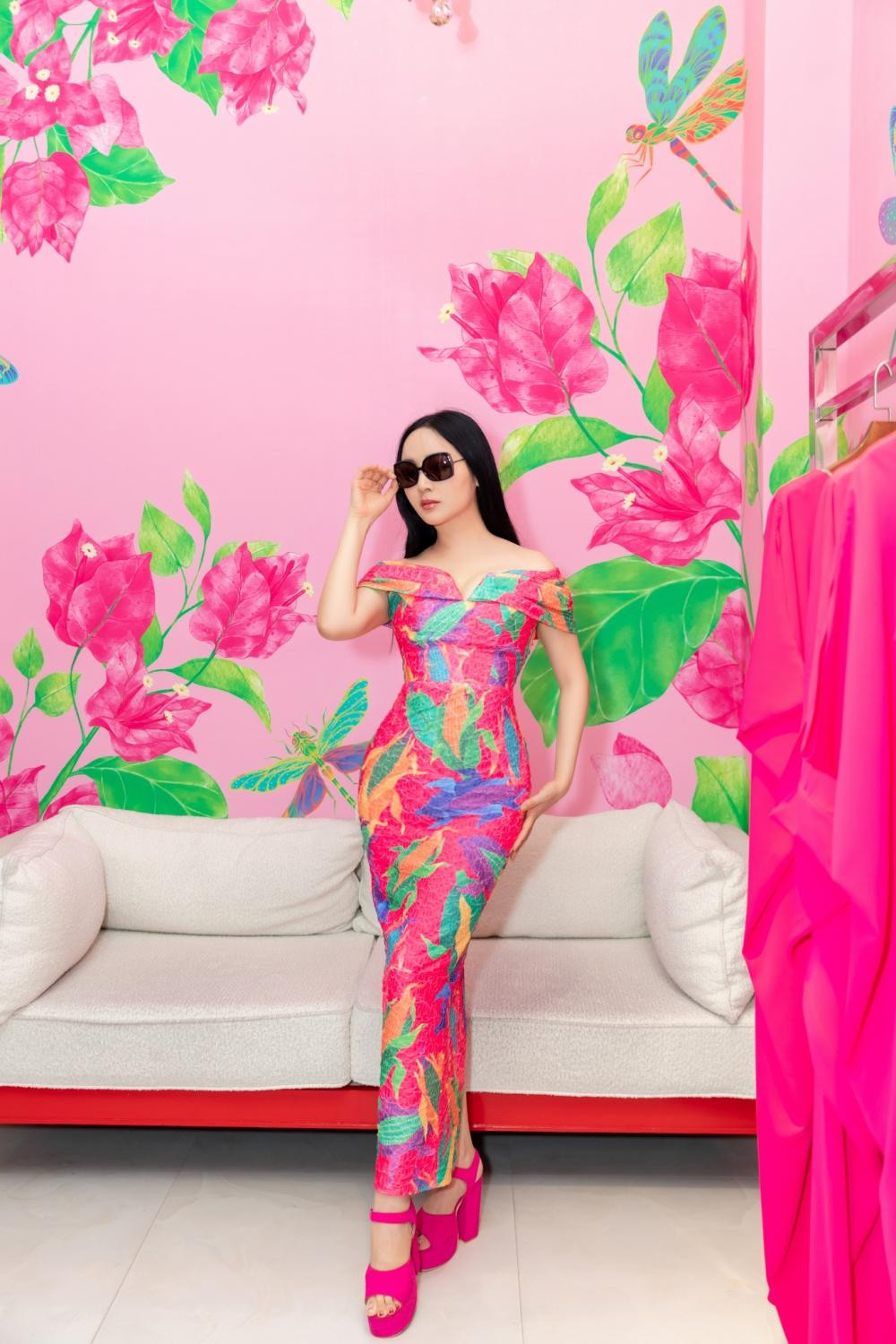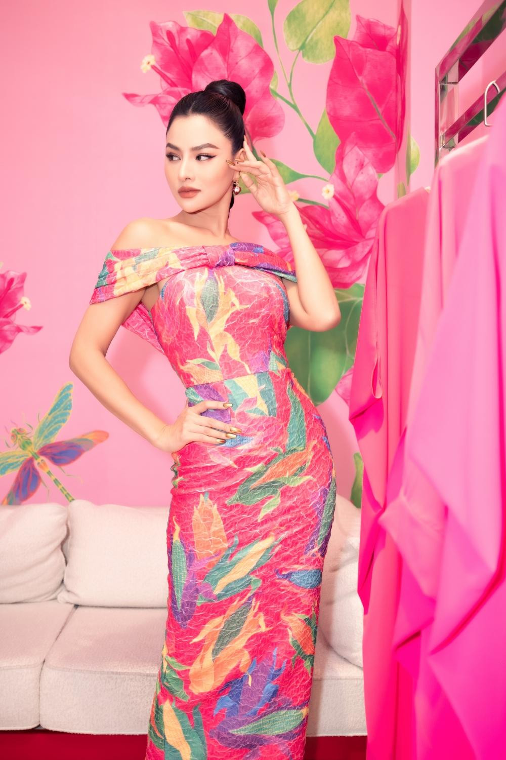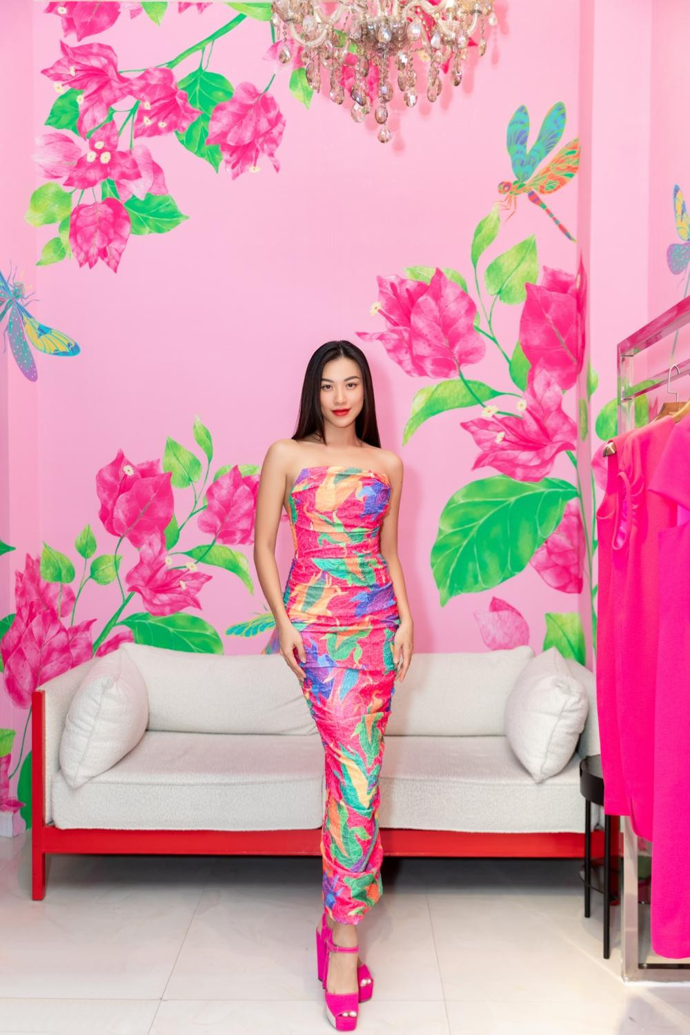 Trong bộ ảnh thử đồ trước show diễn, 7 nàng thơ đồng loạt diện thiết kế tông hồng, dáng bodycon khoe sắc vóc. Họa tiết trái bắp cũng là họa tiết tiếp theo của BST Resort 2022 được tiết lộ.