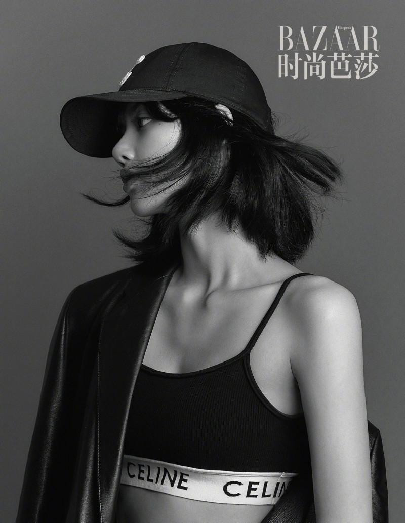 Netizen nhanh chóng phát hiện ra kiểu mix đồ này khá giống với hình ảnh của Lisa trên bìa tạp chí Harper’s BAZAAR Trung số tháng 4. Lisa cũng mặc chiếc áo lót thể thao của CELINE và khoác ngoài áo da giống Tiểu Vy.