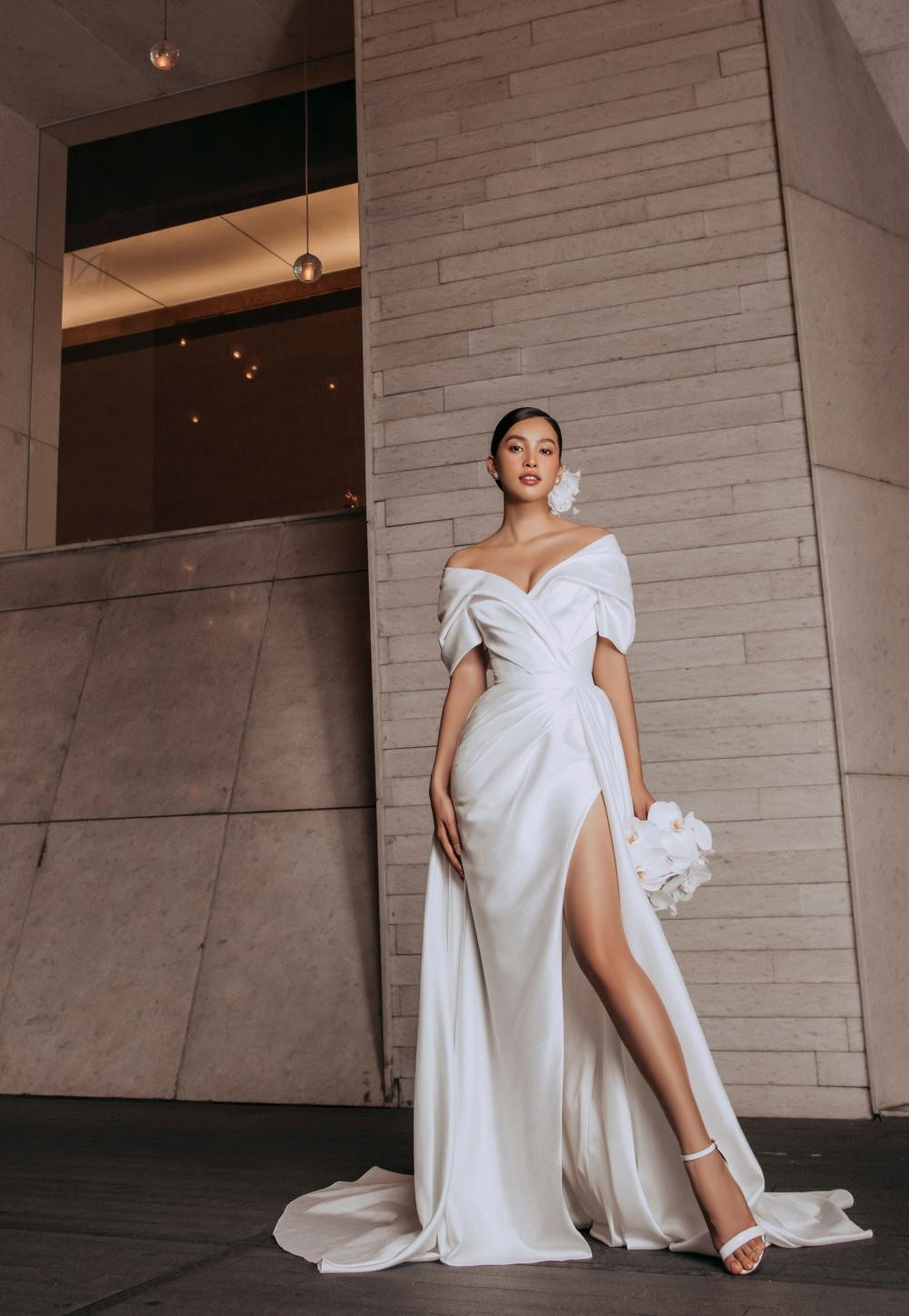 Hoa hậu Tiểu Vy mix thêm đôi hoa tai tinh xảo, kết hợp cùng lối trang điểm nhẹ nhàng. Tiểu Vy cũng là một trong những nàng thơ và là khách hàng thân thiết của Lê Thanh Hòa kể từ khi cô đăng quang Hoa hậu Việt Nam 2018 đến nay.