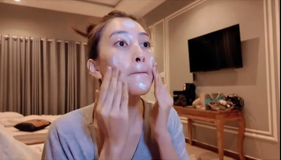 Rồi Tiểu Vy dùng đến kem dưỡng ẩm chống lão hóa, đôi khi cũng dùng kem dưỡng chống mụn nếu có những chiếc mụn bắt đầu nhú lên. Tất nhiên nàng hậu không quên bôi cả kem mắt, dưỡng môi.