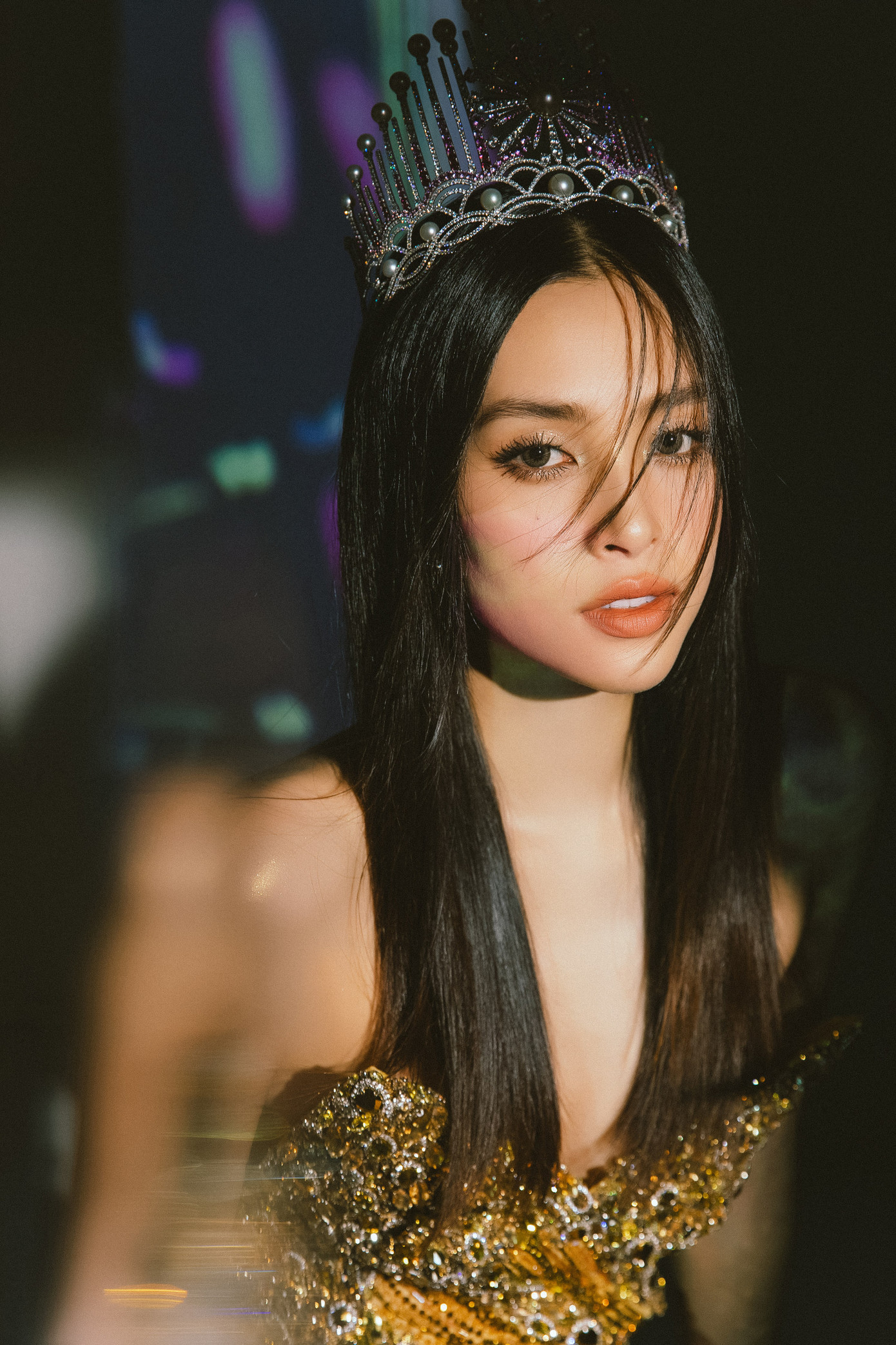 Trong bộ ảnh lần này, Hoa hậu Tiểu Vy lựa chọn background là những hình ảnh đêm đăng quang Hoa hậu Việt Nam 2018. Với concept lần này, cô nàng đã khoe khéo được nhan sắc thăng hạng cùng thần thái cuốn hút của mình, sau 5 năm đăng quang.
